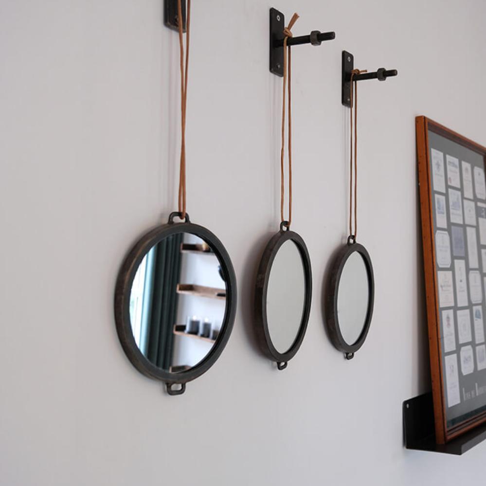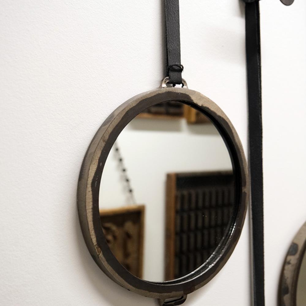 Smilla runder Spiegel mit Lederschnur