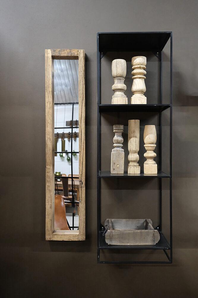 Schöner, rustikaler Spiegel mit rohem Rahmen aus Altholz. Wenn der Platz an der Wand knapp ist, bietet sich hier eine gute Möglichkeit für einen schmalen, aber dennoch traumhaft schönen Wandspiegel. Der Rahmen um den Spiegel hat Charakter mit vielen rustikalen Details. Verwenden Sie ihn in Ihrer Umkleidekabine in Ihrem Geschäft, auf der Toilette Ihres Cafés oder in jedem Raum Ihres Heims.
