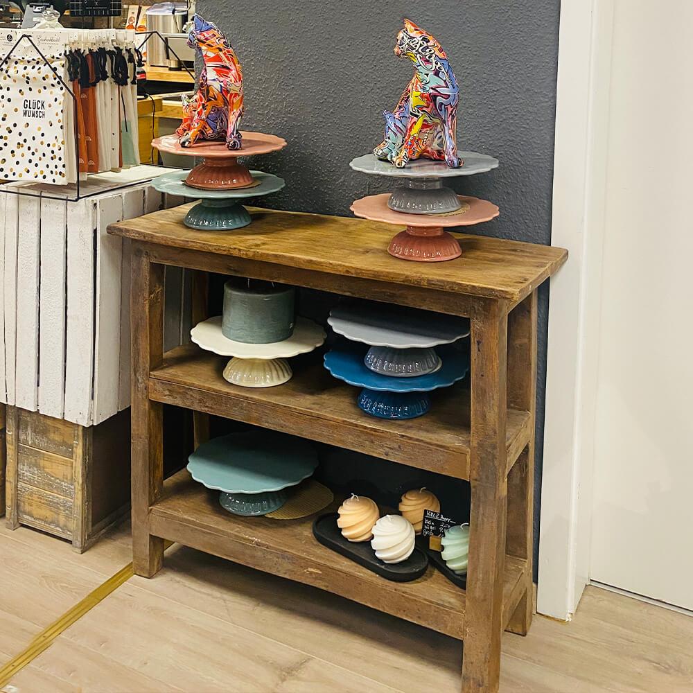 Deshalb habe ich heute fast alles im Laden mit einem Preisschild versehen. Es führt immer zu einem guten Gespräch, wenn die Kunden entdecken, dass sie die Möbel auch im Laden kaufen können. Ich spüre ein großes Interesse dafür. Viele haben sich nach dem oben genannten Kuta-Tisch erkundigt, und ich habe auch ein Marley-Bücherregal an eine Kundin verkauft, nachdem sie gesehen hatte, dass es im Laden zur Präsentation von Stumpenkerzen verwendet wurde. Insgesamt kommt das Konzept sehr gut an und wir haben viel zu tun.“