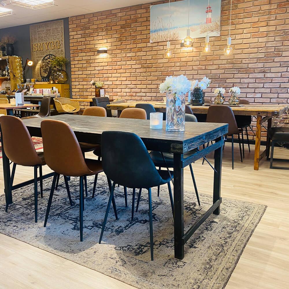 Nach der Übernahme des Ladens entfernte Alexandra als erstes eine Ziegelsteintapete und ersetzte sie durch eine echte Ziegelwand. Der Stil sollte nordisch sein und Gemütlichkeit sowie eine heimelige Atmosphäre ausstrahlen. „Ich bin so froh, dass wir diese Mauer gebaut haben. Mein erstes Möbelstück im Laden war ein großer langer Kuta-Tisch von Trademark Living, und ich kann mich noch genau daran erinnern, wie aufgeregt ich war, als der Tisch vor der Ziegelwand platziert wurde. Es war ein echter „WOW-Moment“. Es ist immer noch mein Lieblingsplatz im Laden und auch der der Kunden.“