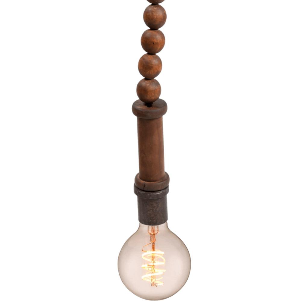 Eine Lampe mit viel Seele und Geschichte. Der Unterteil vor der Fassung besteht aus einer alten Garnspule, die früher ihren festen Platz in einer Nähstube hatte und nun als dekoratives Detail neues Leben erhalten hat. Über der Spule befindet sich eine Reihe schöner Holzkugeln, die einen lebendigen Rhythmus schaffen und einen warmen Kontrast zum rohen industriellen Charakter der Fassung bilden. Hängen Sie die Lampe über den Esstisch, in ein Café oder als stimmungsvolles Element ins Wohnzimmer und lassen Sie sie ihre Geschichte durch Licht und Material erzählen. Mit einer dekorativen Glühbirne betonen Sie den persönlichen und einzigartigen Look. Eine Lampe, die Wiederverwendung, Handwerk und Design auf die perfekte Weise verbindet.