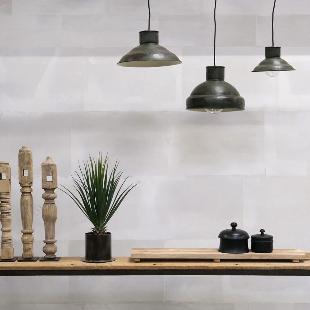 Diese Deckenlampe verbindet ein fabrikinspiriertes Design mit einer schönen dunkelgrünen Oberfläche und sorgt dadurch für einen rauen und zugleich stimmungsvollen Ausdruck. Sie ist aus Eisen gefertigt und mit einem schwarzen Textilkabel ausgestattet, das den industriellen Look unterstreicht. Die Lampe wirkt sowohl einzeln als auch in einer Reihe mit mehreren – zum Beispiel im Flur, in der Küche oder in einer Café-Einrichtung, wo Sie eine authentische und persönliche Atmosphäre schaffen möchten. Die Lampe ist außerdem in einer größeren Ausführung mit einem Durchmesser von Ø35 cm erhältlich. Suchen Sie im Webshop nach M08365, um dieses Modell zu finden.