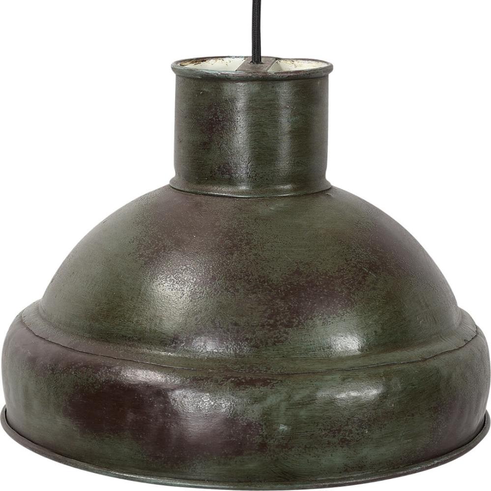 Super schöne rustikale fabrikähnliche Lampe aus rohem Eisen mit industrieller Antikgrüner Farbe. Die Hängelampe hat ein 2 Meter langes schwarzes Stoffkabel. Die Lampe hat einen maskulinen Ausdruck und verleiht Ihrer Einrichtung das gewisse Etwas, während sie gleichzeitig eine funktionale Lichtquelle ist.