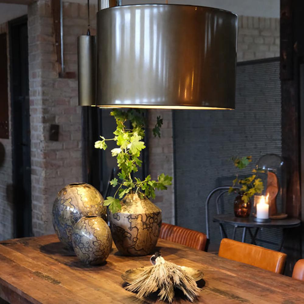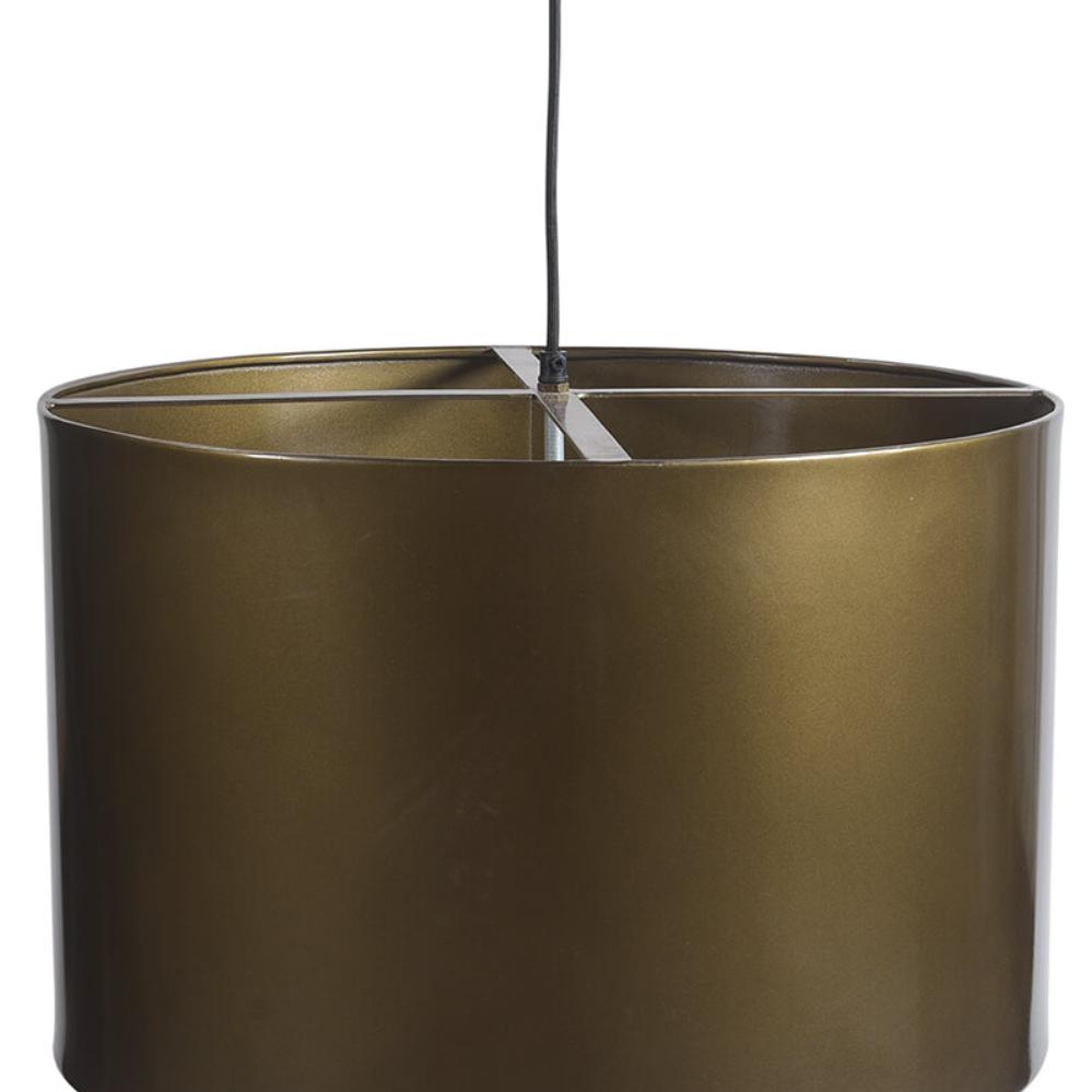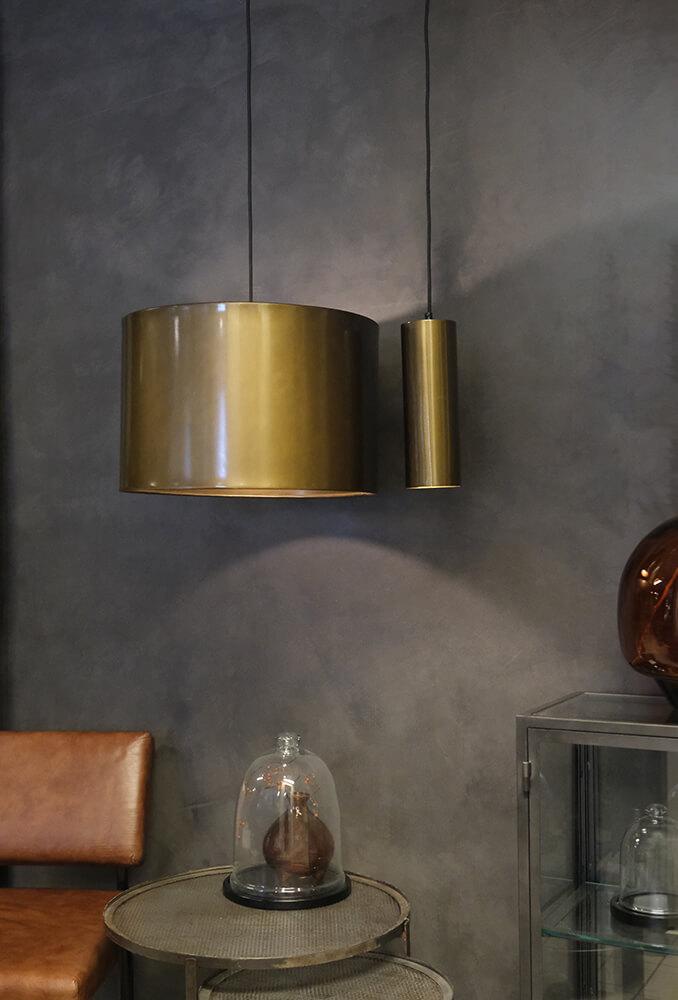 Diese große Jonah Deckenleuchte aus Eisen ist in einem warmen Antikmessing lackiert, das ihr sowohl ein modernes als auch klassisches Erscheinungsbild verleiht. Die breite Zylinderform macht die Lampe zu einem markanten Einrichtungselement und sorgt zugleich für ein angenehmes Licht. Durch ihre Größe eignet sie sich perfekt als Mittelpunkt über dem Esstisch, im Wohnzimmer oder in größeren Räumen, in denen sie sowohl Stimmung als auch Charakter hinzufügt. Die schlichte Form in Kombination mit der antikmessingfarbenen Oberfläche schafft eine Balance zwischen industriellem Design und zeitlosem Stil. Das schwarze Stoffkabel rundet das Gesamtbild ab und lässt die Leuchte zugleich elegant und robust wirken.