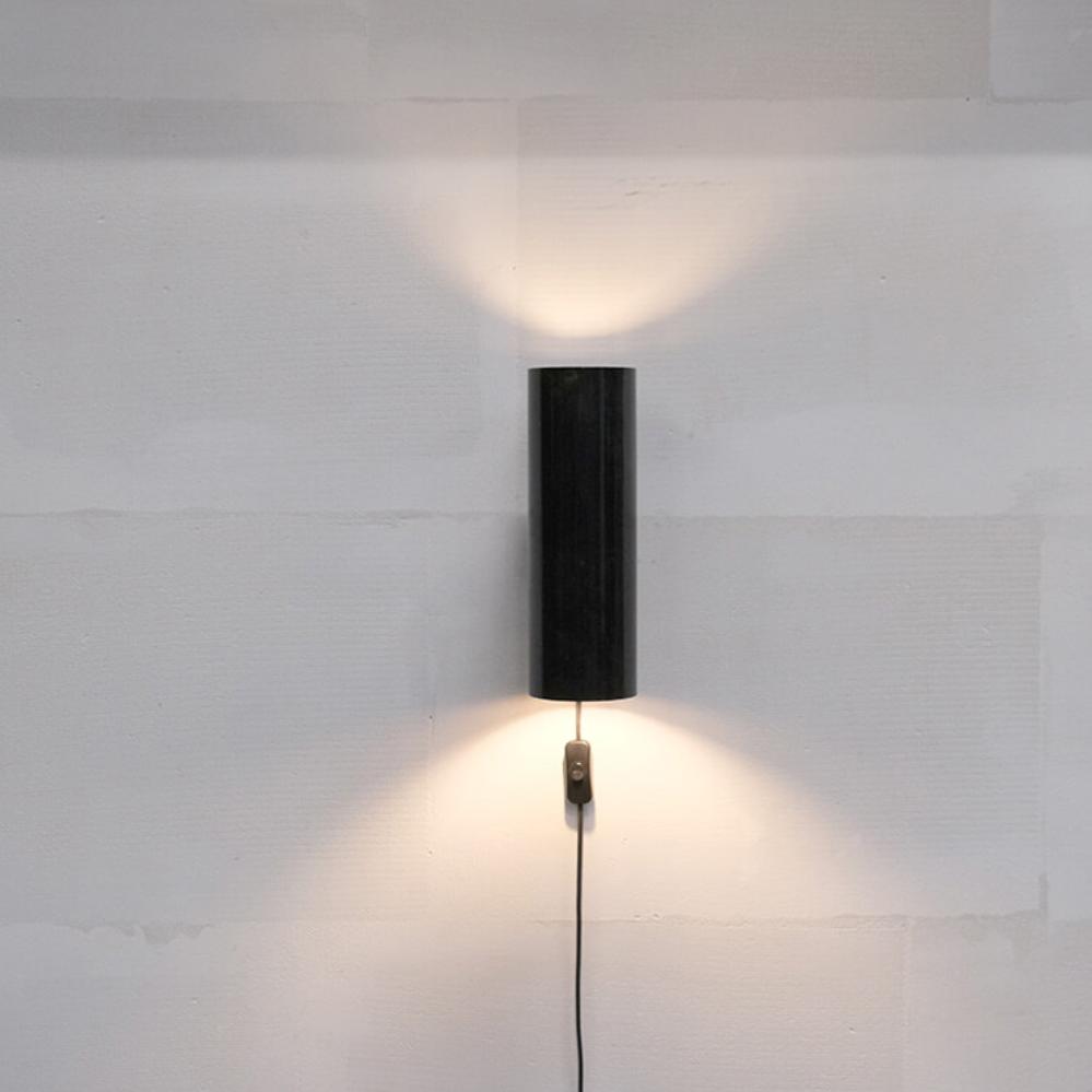 Schlichte zylindrische Eisen-Wandlampe mit dunkelblauer Marmorierung mit 2 Fassungen. Die Wandlampe Jonah erhellt den Raum mit einem schönen zweiteiligen Schein aus ihren 2 Lichtquellen – oben und unten. Das Licht ist ausschließlich indirekt und blendet somit nie. Mit ihrem schlichten Design fügt sich die Wandlampe problemlos in jede Einrichtung ein und sorgt für eine richtig gemütliche Atmosphäre.