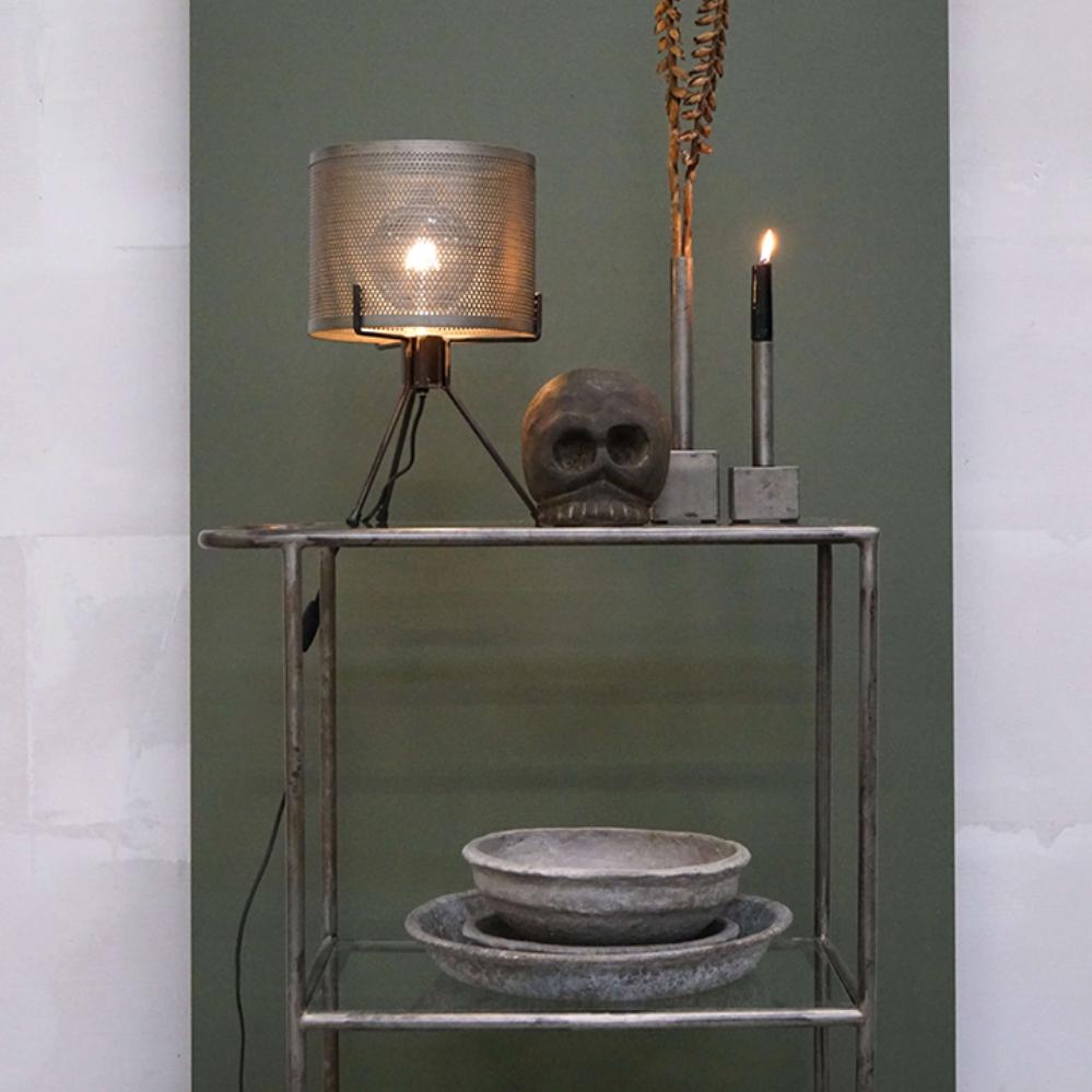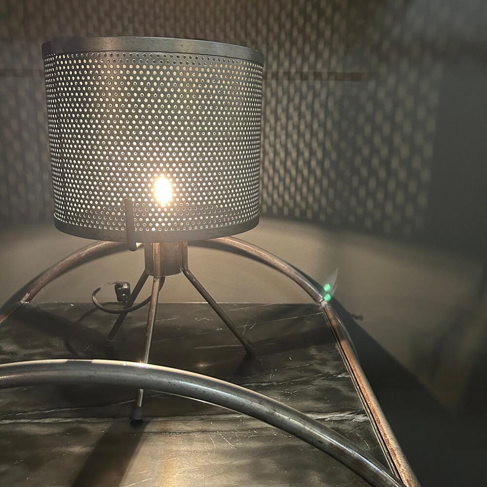 Tischlampe für ein stilvolles und persönliches Dekor. Die Tischlampe besteht aus robustem Eisen, und mit dem perforierten Lampenschirm wirkt die Tischlampe industriell rau. Super cool mit unseren LED-Leuchtmitteln.