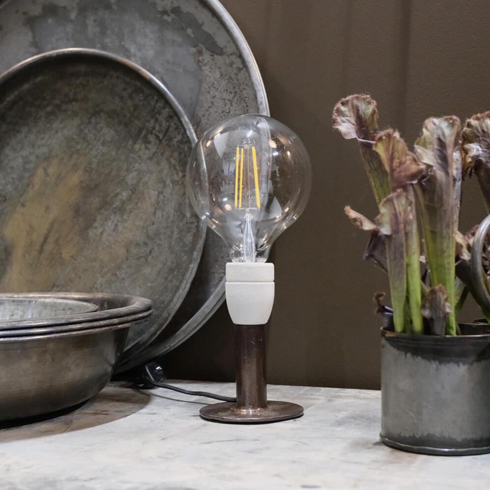 “Simplicity is the ultimate sophistication.” - Leonardo da Vinci. Die Leonardo Tischlampe verkörpert rohe Eleganz in ihrer schlichtesten Form. Mit ihrem minimalistischen und industriellen Design verzichtet sie auf Schnörkel und bringt stattdessen echte Materialien und persönlichen Stil in den Raum. Der rohe Eisenfuß und die weiße Porzellanfassung bilden einen spannenden Kontrast und verleihen der Lampe Charakter.Möchten Sie Ihrem Lichtkonzept das gewisse Etwas geben? Kombinieren Sie mehrere Leonardo Lampen oder setze ein handgefertigtes LED-Leuchtmittel aus unserem Sortiment ein.