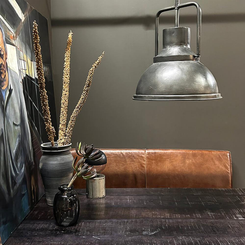 Schaffen Sie mit einer Liam-Pendelleuchte einen durchgängigen Factory-Style. Diese industrielle Deckenlampe hat eine raue Oberfläche und eine hell cremefarbene Innenseite. Am patinierten Lampenschirm und Baldachin ist eine Eisenkette befestigt, die der klassischen Leuchte einen extra rustikalen Touch verleiht. Die Lampe hat ein Erdungskabel und ist mit einer E27-Fassung ausgestattet, die zu allen unseren LED-Leuchtmitteln passt, die hier in unserem Shop erhältlich sind.