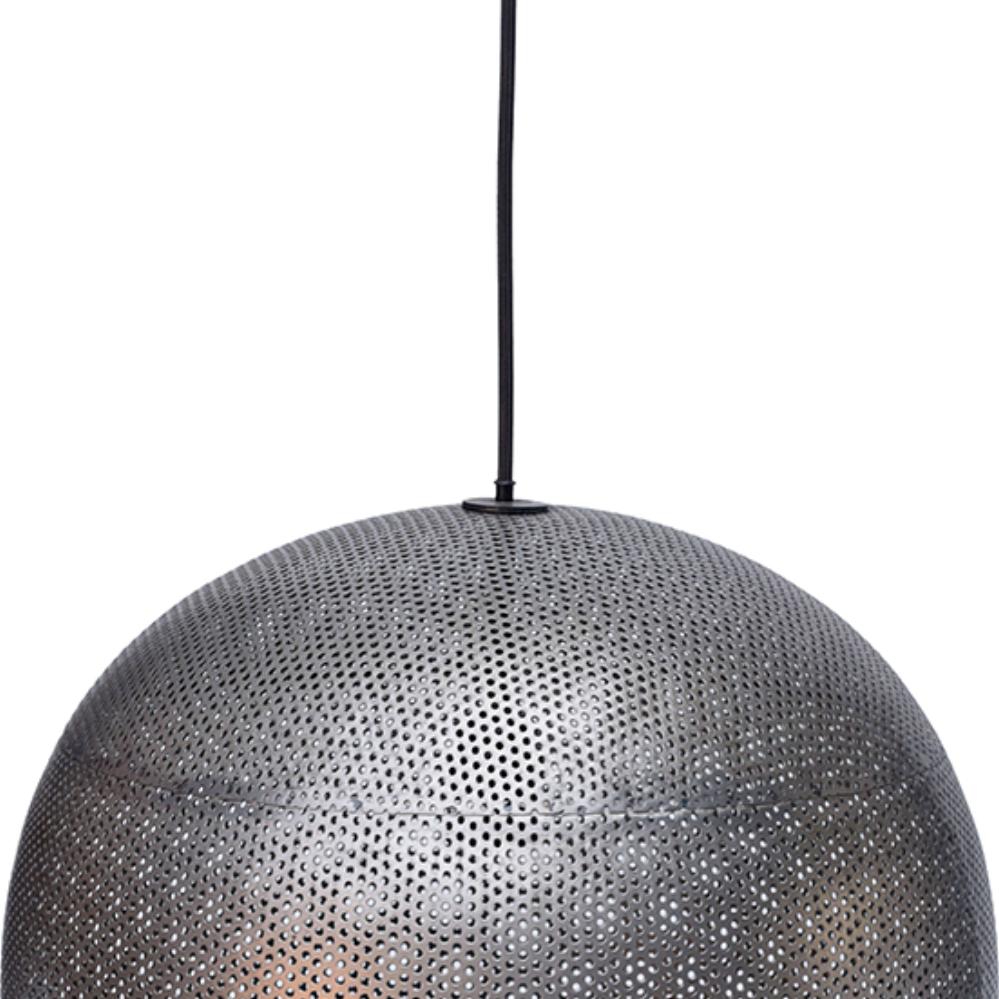 Die Moonlight-Pendelleuchte in mittlerer Größe ist der Inbegriff von Balance, weder zu groß noch zu klein, sondern genau die Lampe, die in die meisten Räume passt. Mit ihrem perforierten Eisenschirm schafft sie einen rauen, industriellen Look, während das Lochmuster ein weiches, stimmungsvolles Licht wirft, das den Raum einladend macht. Über dem Esstisch kommt die Lampe besonders gut zur Geltung. Das direkte Licht sorgt dafür, dass sich Ihre Gäste leicht versammeln können, während das gemusterte Licht über Wände und Decke spielt und dem Raum einen einzigartigen Ausdruck verleiht. Auch in einem Restaurant funktioniert sie hervorragend, da sie sowohl funktionales Licht als auch eine angenehme Atmosphäre bietet. Für zusätzlichen Effekt können Sie die mittlere Moonlight mit den anderen Größen kombinieren. So entsteht eine dynamische und lebendige Lichtlandschaft, die dem Raum Charakter und Tiefe verleiht. Geeignet für Glühbirnen bis 9,5 cm Durchmesser. Ohne Baldachine.