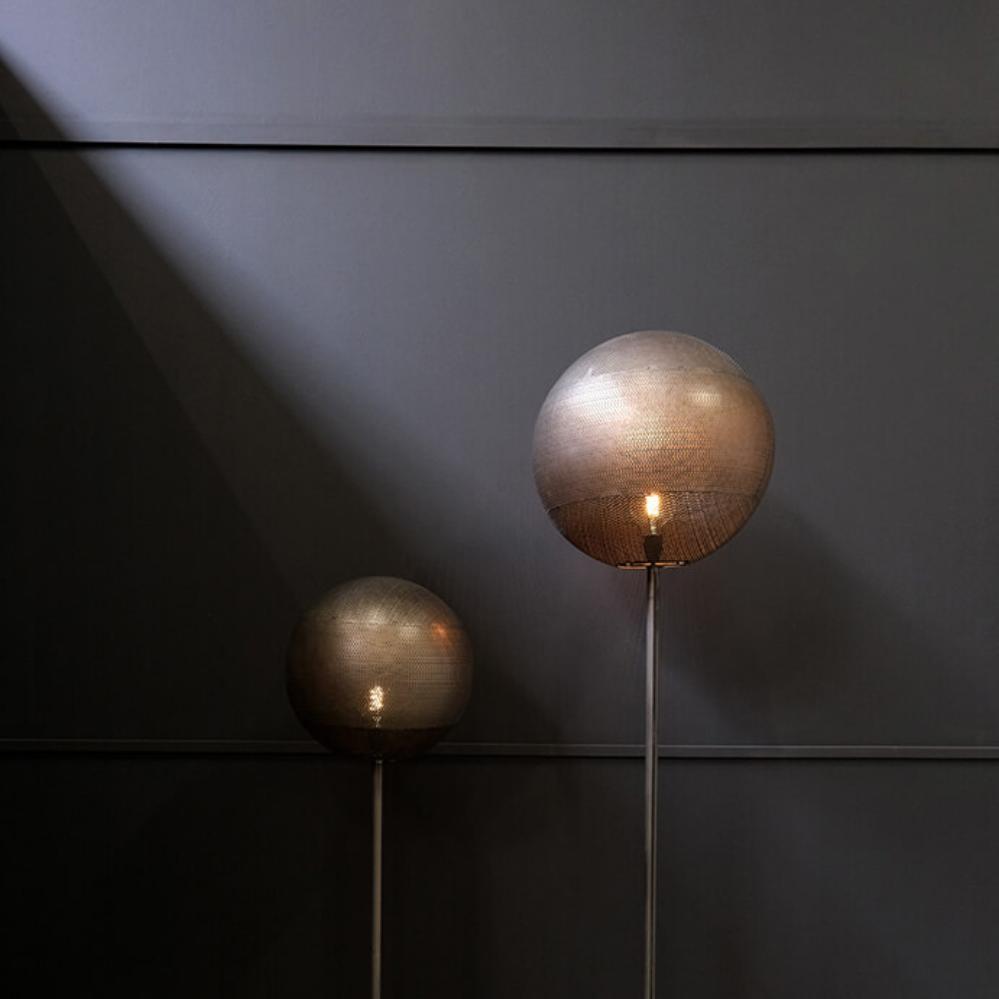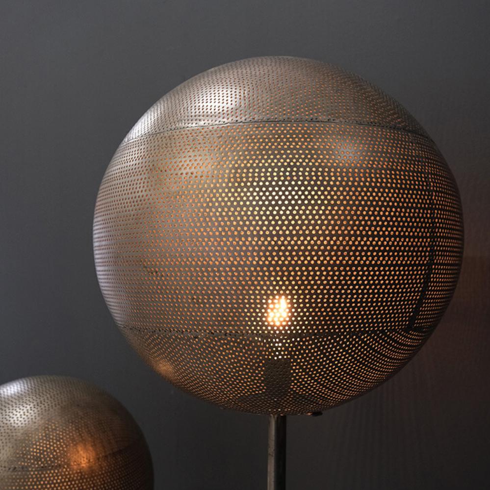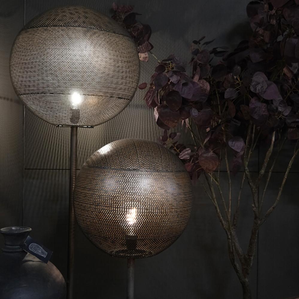 Die Moonlight Stehlampe in der Größe Large ist ein wunderschöner Hingucker. Sie ist aus Eisen gefertigt und steht stabil auf einem runden Fuß mit einem Durchmesser von 45 cm. Der schlanke Ständer trägt einen runden, perforierten Lampenschirm, der ein stimmungsvolles und fast märchenhaftes Licht- und Schattenspiel in den Raum zaubert. Ideal für alle, die gerne das Raue mit dem Raffinierten kombinieren – die Lampe passt sowohl in ein klassisches Wohnzimmer als auch in eine moderne Café-Einrichtung. Die Serie ist in drei Größen erhältlich, damit Sie die perfekte Variante für Ihren Raum finden.