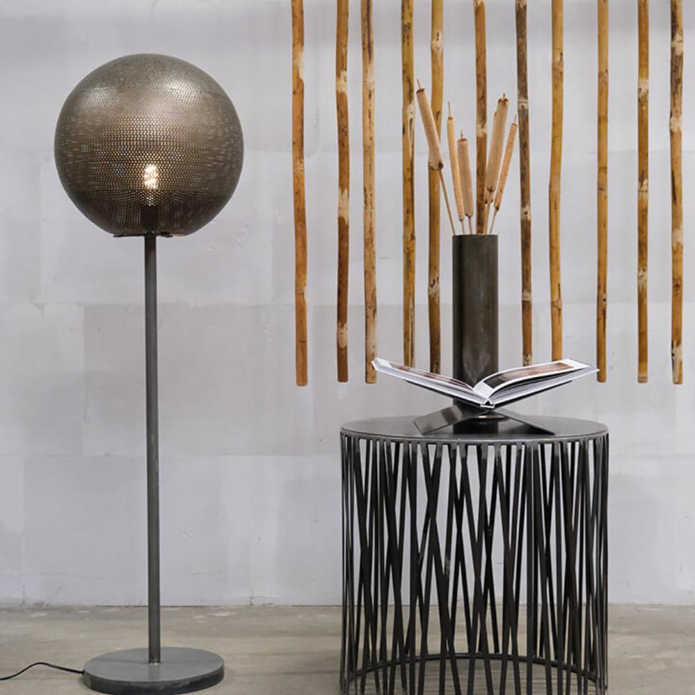 Die Moonlight Stehlampe in mittlerer Größe ist die perfekte Mischung aus maskulinem Design und stimmungsvoller Beleuchtung. Sie besteht aus Eisen und steht stabil auf einem runden Fuß mit einem Durchmesser von 30 cm. Ein schlanker Ständer trägt den markanten, runden Schirm aus perforiertem Eisen und genau die vielen kleinen Löcher im Schirm sorgen beim Einschalten der Lampe für ein magisches Lichtspiel. Eine sichere Wahl für klassische, minimalistische oder industrielle Einrichtungen. Die Moonlight Lampe ist in drei Größen erhältlich, perfekt zum Kombinieren je nach Bedarf.