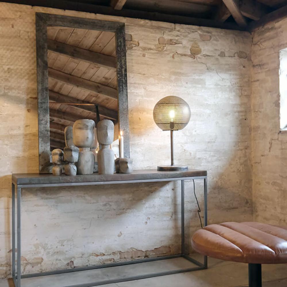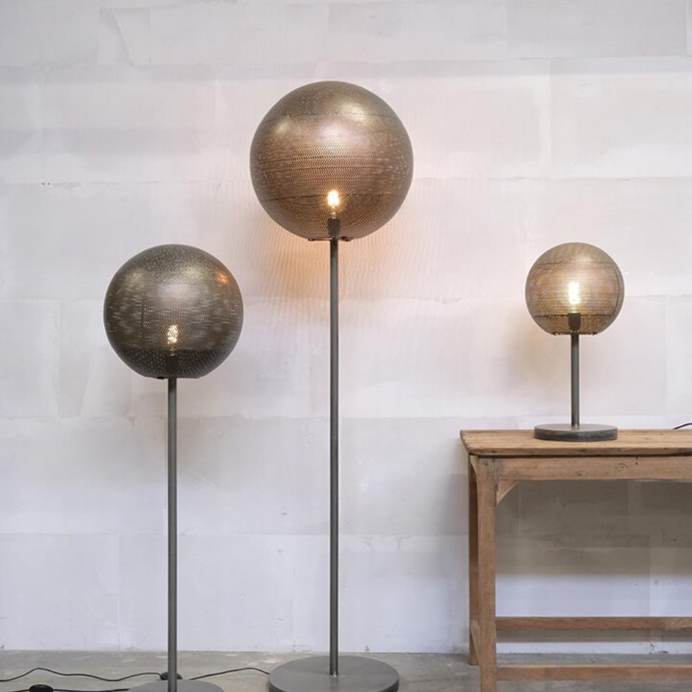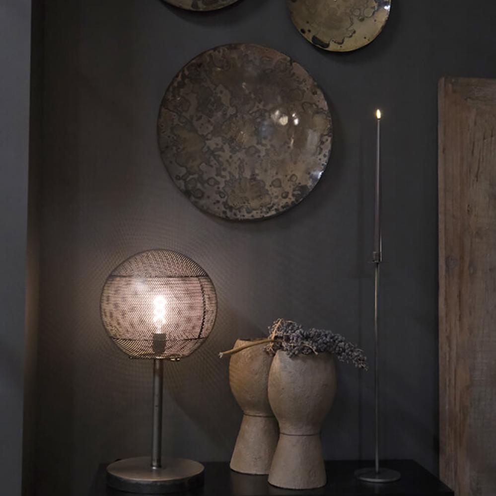 Die Moonlight-Lampenserie von Trademark Living besteht aus Lampen, die mit ihrer Ausstrahlung jedem Raum eine schöne Beleuchtung verleihen. Das kleine Modell Moonlight ist eine Tischlampe aus Eisen, die sowhl als Tischlampe als auch kleine tolle Stehlampe verwendet werden kann. Sie hat einen massiven runden Fuß mit einem Durchmesser von 25 cm, der die Basis für einen dünnen Stab bildet, der auf einen runden Schirm aus perforiertem Eisen trifft. Die kleinen Löcher im Schirm sorgen für ein abenteuerliches Lichtspiel im Raum, das ein stilistisches Design ist, das perfekt zu der rohen, klassischen oder schlichten Einrichtung passt. Diese Stehlampe ist in 3 Größen erhältlich: Diese Tischlampe, sowie eine Stehlampe in den Größen Medium und Large.