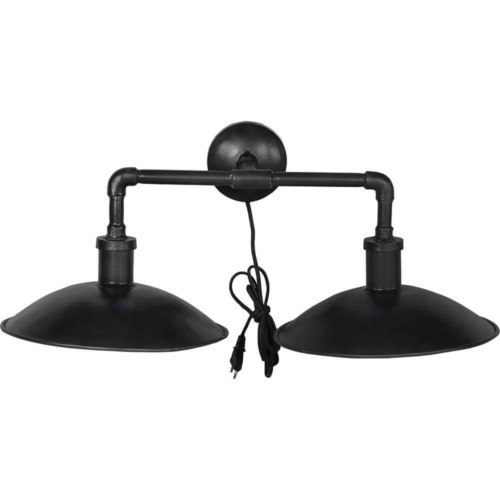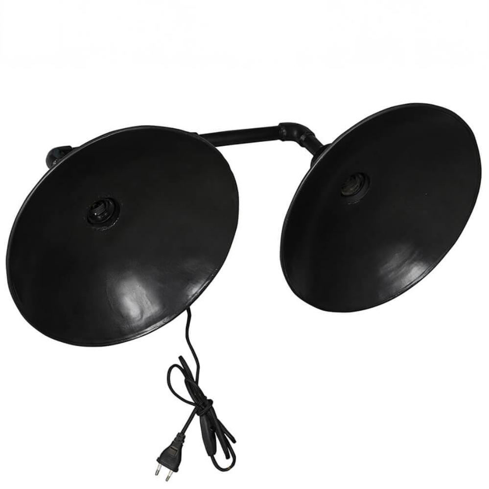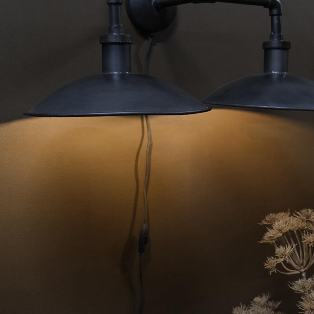 Diese doppelte Wandlampe in dunkler Eisenoptik ist ein perfektes Beispiel für industrielle Eleganz und Funktionalität. Die beiden Metallschirme sind an einem rohrähnlichen Gestell montiert, das der Lampe einen rauen und authentischen Charakter verleiht. Die dunkle Oberfläche und das Stoffkabel betonen den industriellen Stil und machen die Leuchte ideal für moderne und rustikale Umgebungen. Perfekt als Beleuchtung über einem Arbeitsbereich, in einem Restaurant oder als einzigartiges Detail im Wohnzimmer, kombiniert diese Lampe praktisches Design mit ästhetischer Anziehungskraft.