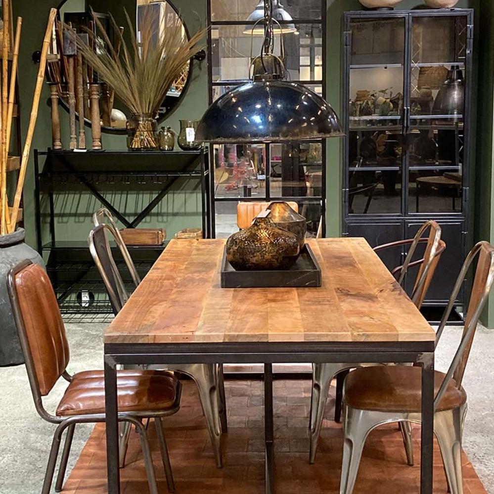 - Details: Klar lackiertes Eisen | Große Fassung E27 | Mit Eisenkette bis zum Deckenbaldachin
