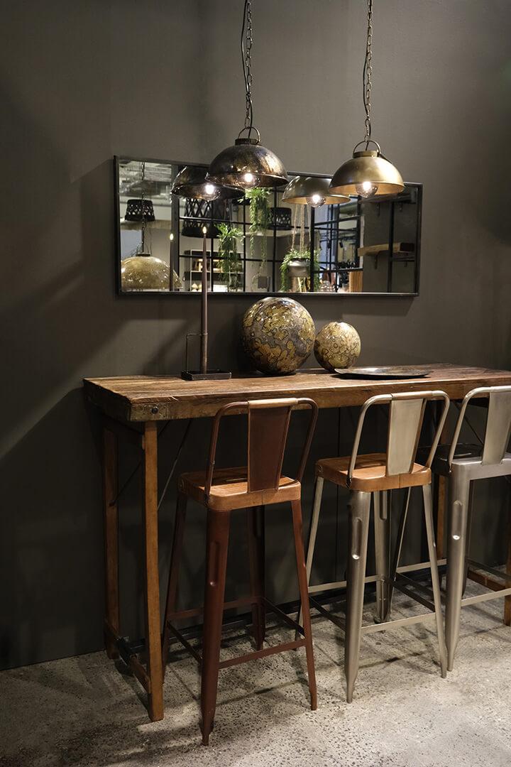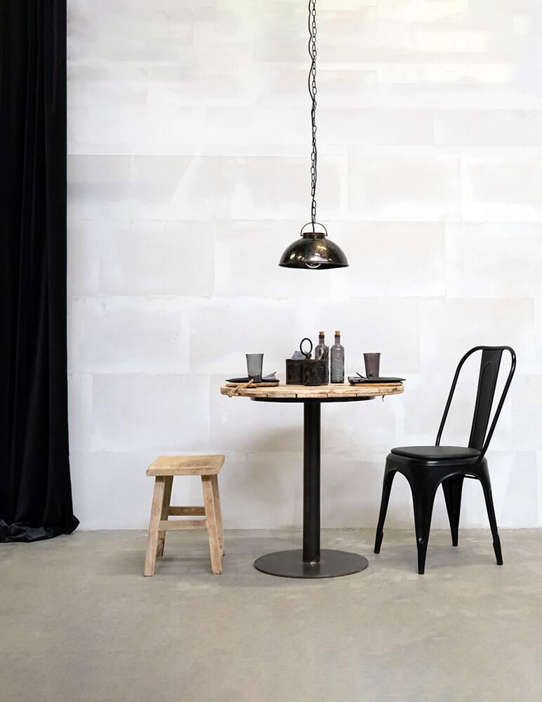 - Details: Klar lackiertes Eisen | Große Fassung E27 | Mit Eisenkette bis zum Deckenbaldachin