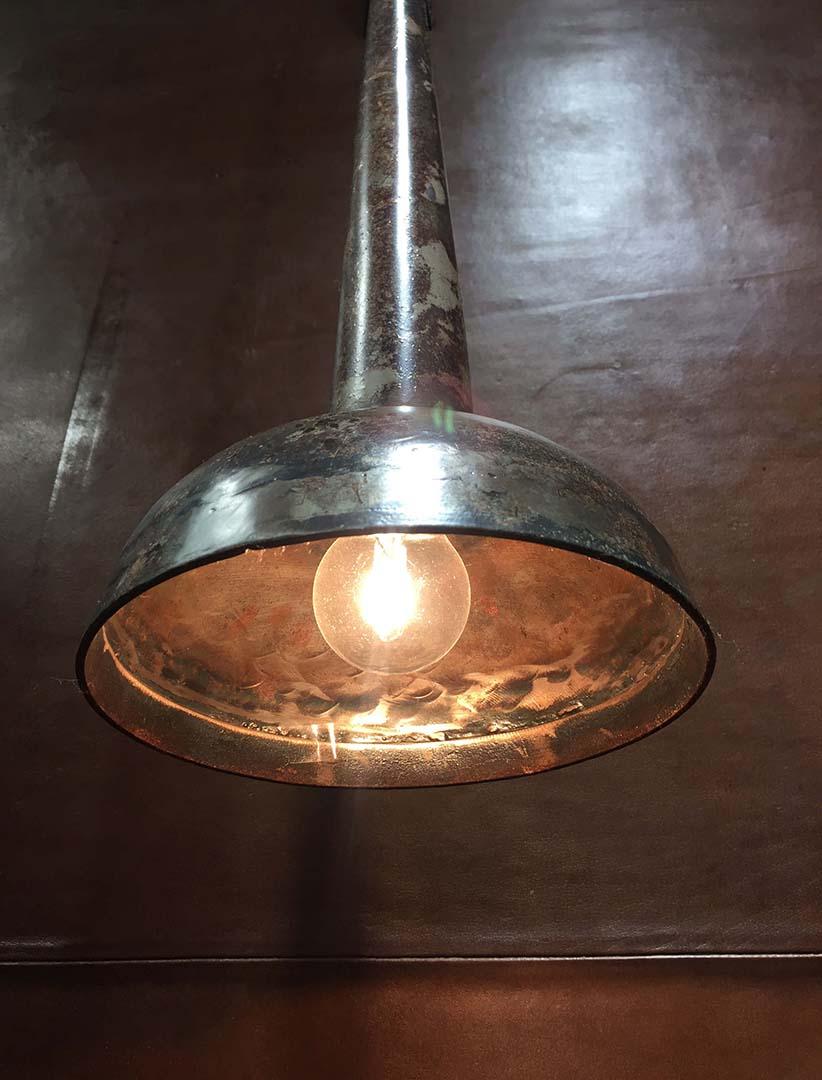 - Details: Klar lackiertes Eisen | Große Fassung E27 | Mit Eisenkette bis zum Deckenbaldachin | Textilleitung