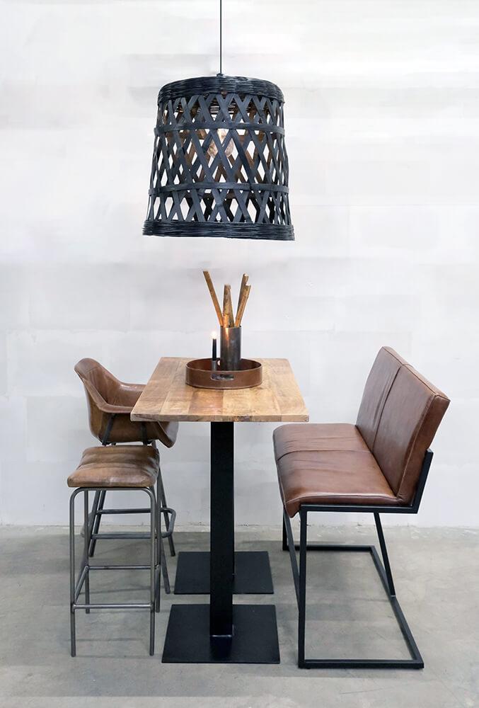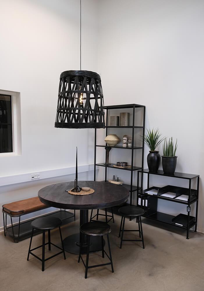Handgeflochtener Lampenschirm aus schwarz lackiertem Bambus. Der Lampenschirm kann überall dort verwendet werden, wo Sie Ihrer Einrichtung eine natürliche Leichtigkeit verleihen möchten. Ursprünglich war dieser Lampenschirm als riesiger Korb gedacht, aber als wir ihn auf den Kopf stellten, entstand Magie und eine Lampe. Diese riesige Lampe benötigt Platz, aber Sie werden einen tollen Wow-Effekt im Raum erzielen. Da die Lampe handgefertigt ist, beachten Sie bitte, dass es von Lampe zu Lampe zu Abweichungen und kleinen Unterschieden sowohl in der Ausführung als auch in der Farbsättigung kommen kann. Oben hat die Lampe einen Durchmesser von 61 cm. Diese Lampe ist auch als Mittelgross M08354 und Klein M08355 erhältlich.