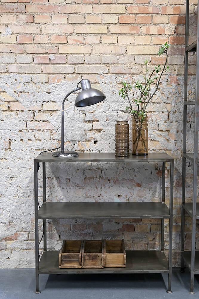 Die Walentin Tischlampe ist als klassische Arbeitslampe aus einer Fabrik gestaltet. Der verstellbare Arm ermöglicht es Ihnen, das Licht zu lenken, während die patinierte Oberfläche der Lampe ein rustikales Vintage-Aussehen verleiht. Perfekt, um eine gemütliche Atmosphäre in Ihrer Leseecke zu schaffen oder als Teil eines industriellen Einrichtungsstils.