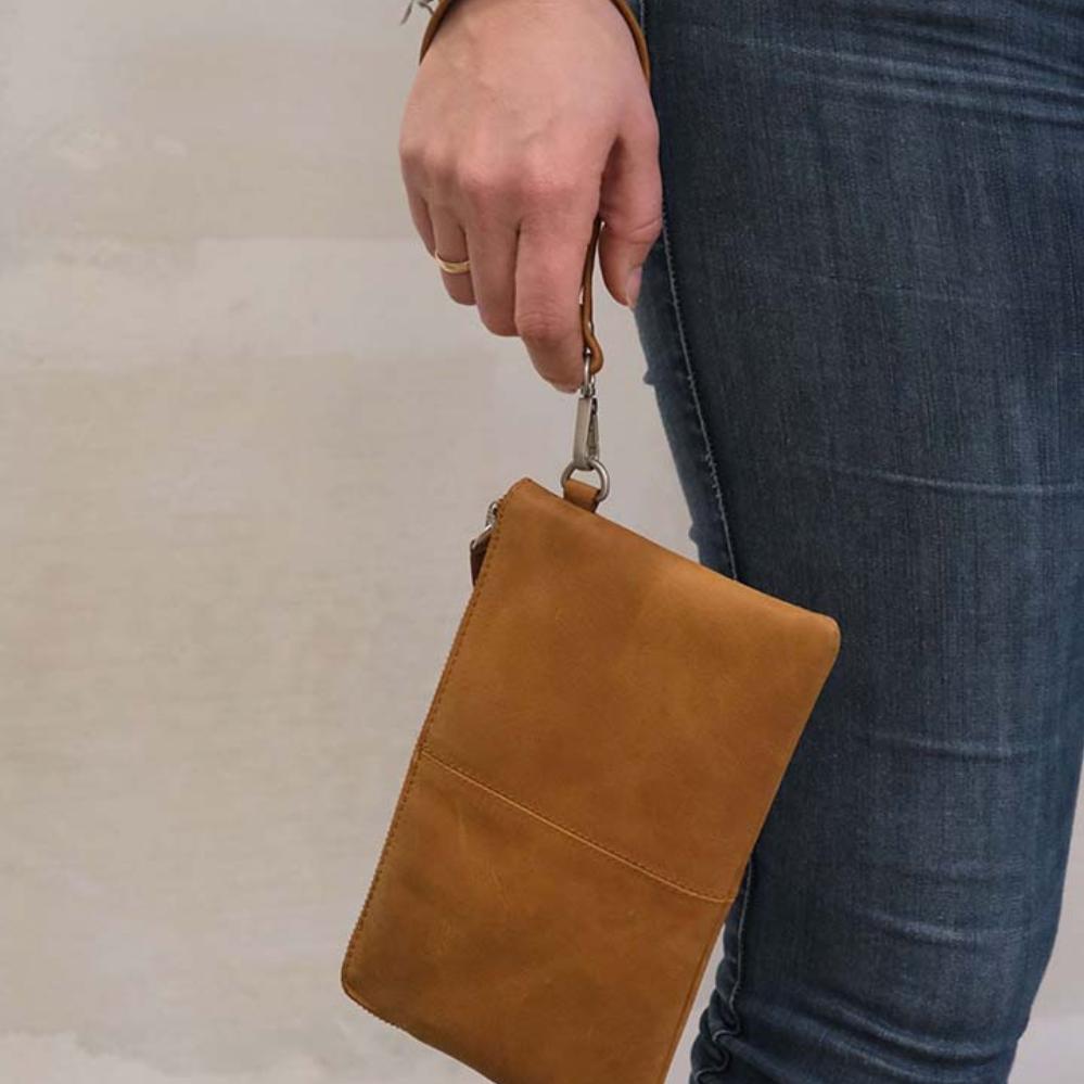Schlichte, elegante Clutch aus braunem Leder mit abnehmbarem Handtrageriemen. Schließt mit einem Reißverschluss. Im Inneren verfügt die Tasche über 1 Fach mit Reißverschluss und 3 Fächer für z.B. Kreditkarten. Diese stilvolle Clutch hat viele Verwendungsmöglichkeiten. Man kann sie als eine kleine Tasche, als Geldbörse, für das Handy u.a. benutzen. Nur die Fantasie setzt Grenzen.