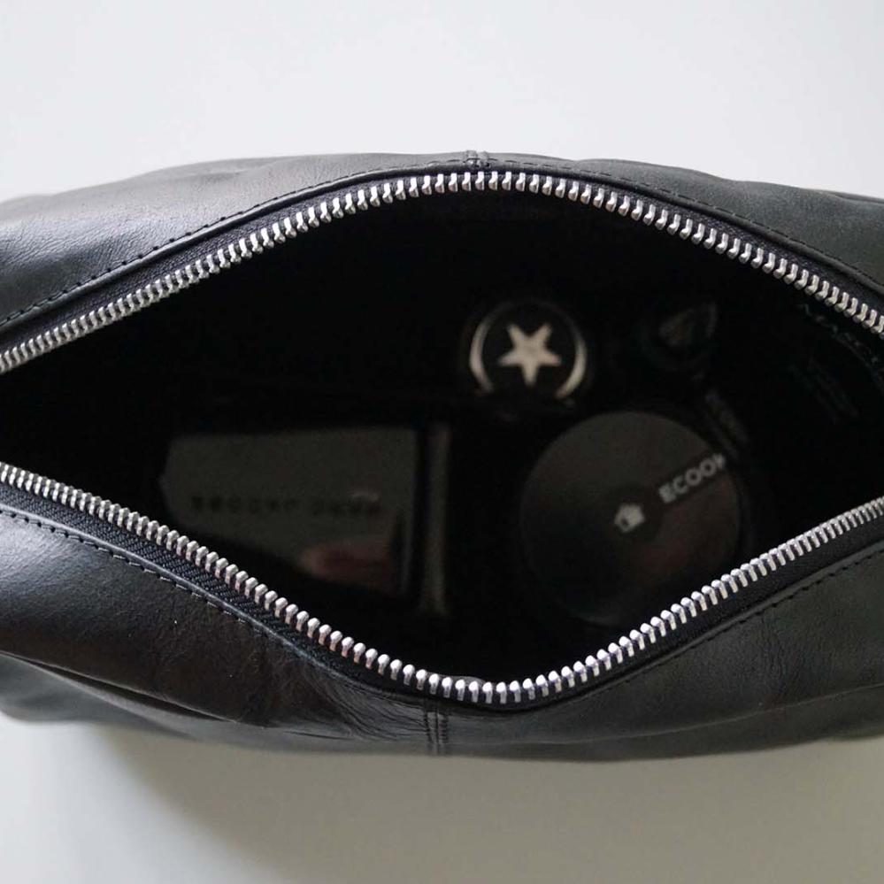 Kulturtasche mit einem klassischen und klaren Design, das sowohl bei Männern als auch bei Frauen beliebt ist. Die Kulturtasche hat ein großes Reißverschlussfach, einen kleineren Tasche und einem Riemen am Ende. Die Tasche besteht aus schwarzem, weichem Büffelleder, das mit den Jahren nur noch köstlicher und weicher wird.