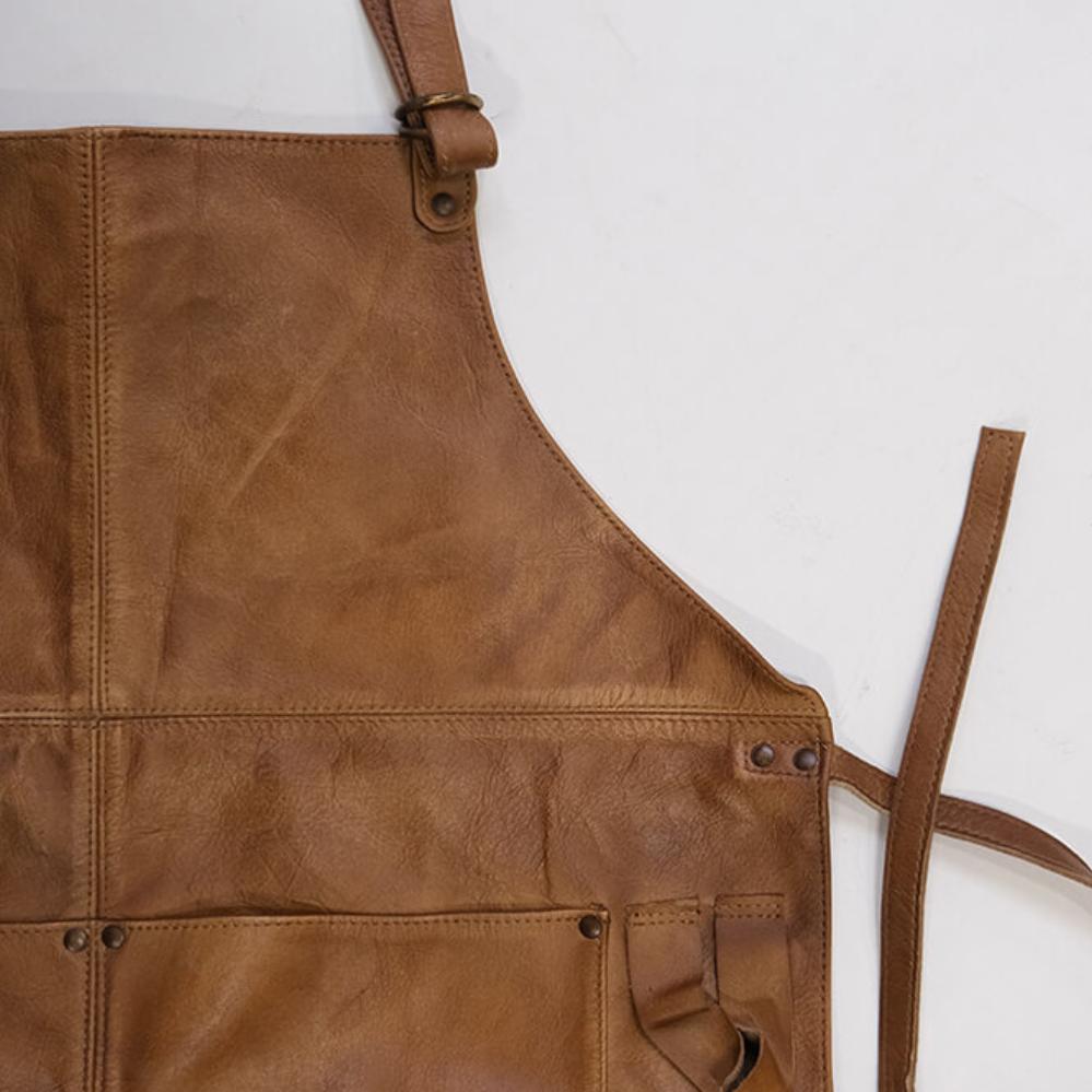 Diese Schürze aus weichem Büffelleder vereint Stil und Funktionalität auf beste Weise. Der natürliche Charme und die schöne braune Farbe des Leders verleihen der Schürze einen rohen und authentischen Look, während das weiche Material auch bei längerem Tragen für Komfort sorgt. Mit den praktischen Taschen auf der Vorderseite können Sie die benötigten Werkzeuge griffbereit haben, egal ob Sie sie zum Kochen, Handwerken oder für andere Arbeiten verwenden. Die Schürze hat verstellbare Träger im Nacken und Bindebänder in der Taille, die eine perfekte Passform gewährleisten.