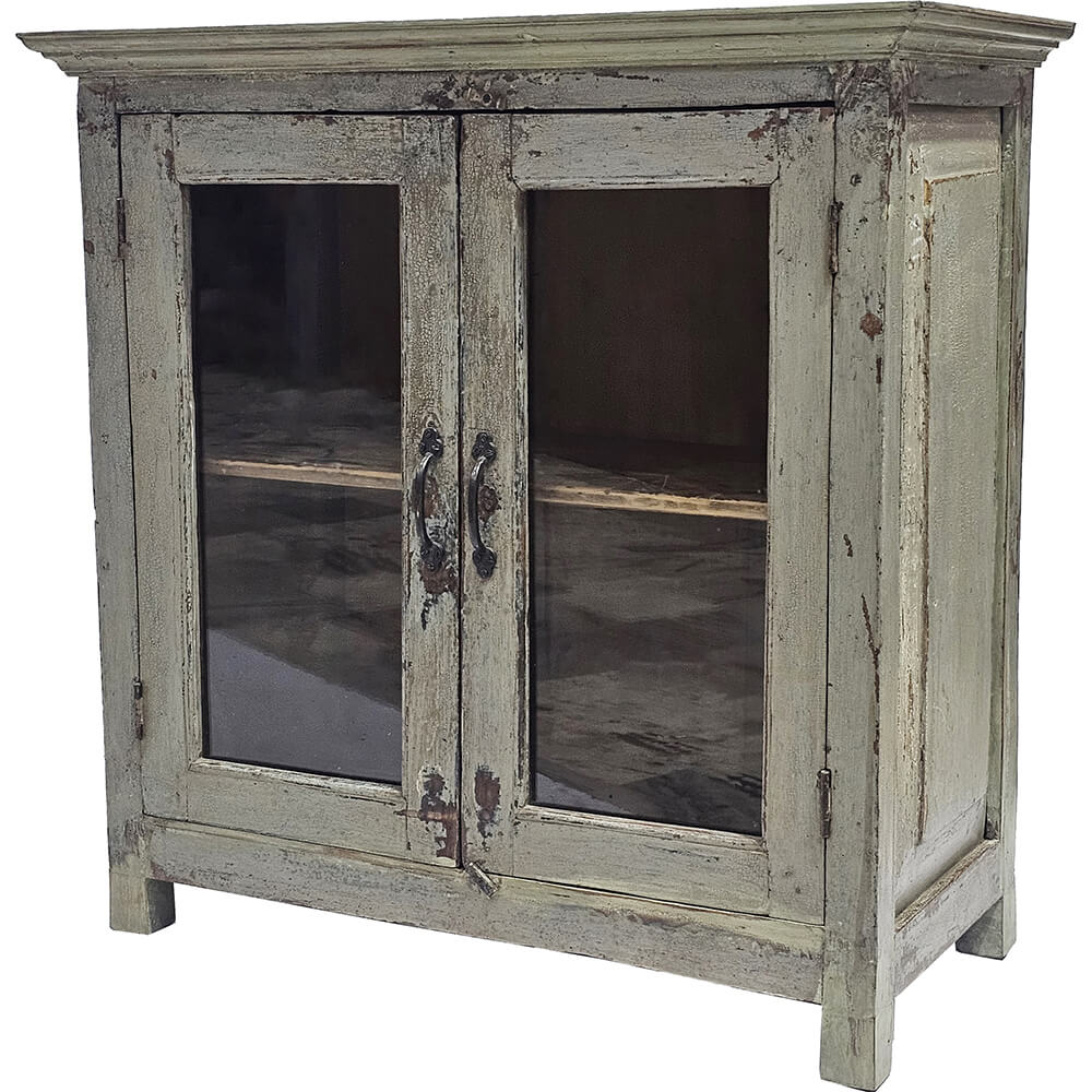 Das charmante alte Sideboard ist ein echtes Unikat mit sichtbarem Charakter und Geschichte. Das Möbelstück ist aus Holz gefertigt und besitzt eine wunderschön patinierte Oberfläche sowie zwei Glastüren, die ihm ein leichtes und einladendes Erscheinungsbild verleihen. Die gedämpften Farbtöne und die abgenutzten Details zeugen von vielen Jahren Nutzung und handwerklicher Arbeit. Im Inneren bietet das Sideboard reichlich Stauraum – ideal für Geschirr, Bücher oder Dekorationsobjekte, die Sie präsentieren möchten. Ein authentisches Möbelstück, das Wärme und Persönlichkeit in jedes Ambiente bringt – ob im privaten Zuhause, im Geschäft oder im Café.