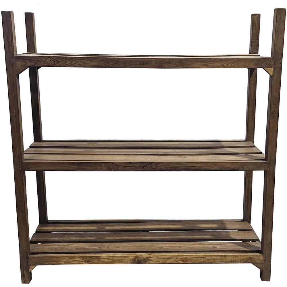 Dieses alte Holzregal strahlt rustikalen Charme und natürliche Authentizität aus. Es ist aus Altholz gefertigt, wobei jede Planke mit ihren individuellen Farbnuancen, Maserungen und der Patina ihre eigene Geschichte erzählt. Das schlichte Design mit drei geräumigen Ablagen macht das Regal sowohl funktional als auch dekorativ. Es passt perfekt in viele Einrichtungsstile von rustikal über industriell bis modern und verleiht dem Raum Wärme und Charakter. Verwenden Sie es zur Aufbewahrung von Büchern, Pflanzen, Küchenutensilien oder als schönes Ausstellungsregal in Ihrem Geschäft oder Café. Ein Möbelstück mit Geschichte und Handwerkskunst.
