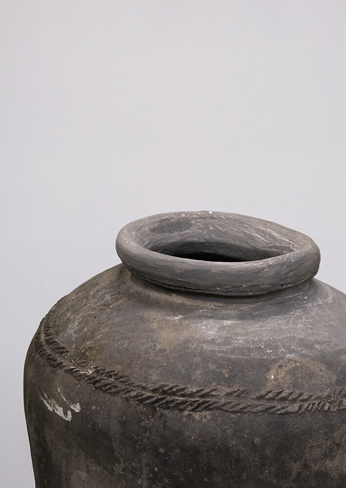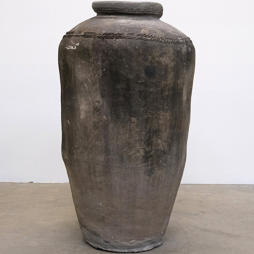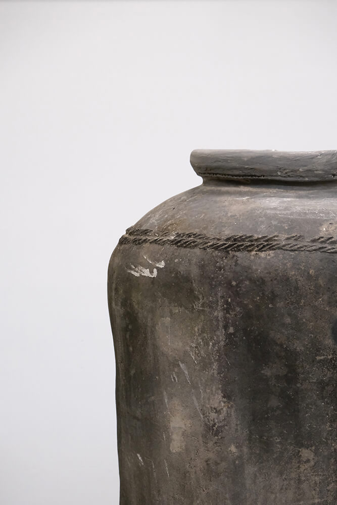 Dieser Topf wirkt, nicht nur durch seine Größe, sondern durch seine Präsenz. Es handelt sich um einen alten, handgefertigten Topf mit einer ruhigen, schweren Form und einer Oberfläche, die in ihrem eigenen Tempo gealtert ist. Er ist nicht poliert, und das soll er auch nicht sein. Ob Sie einige große Zweige hineinstellen oder ihn leer lassen, er zieht Aufmerksamkeit auf sich, ohne aufdringlich zu wirken. Hinweis: Der Topf ist nicht wasserdicht.