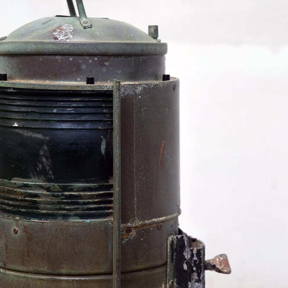 Rustikale Schiffsleuchte aus grünspanigem Messing