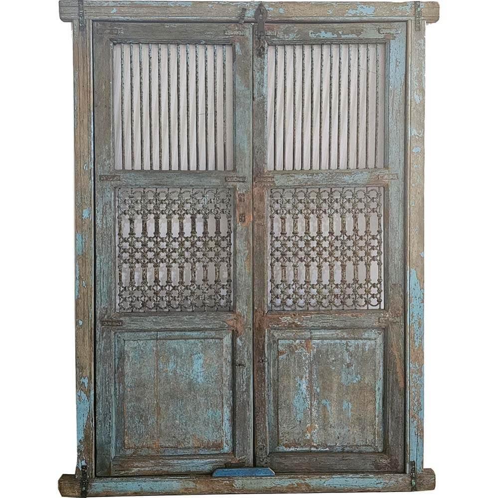 Diese rustikale Tür mit Eisengitter ist ein wahrer Schatz aus vergangenen Zeiten. Das abgenutzte Holz und die patinierte blaugrüne Farbe erzählen Geschichten von vielen Jahren der Nutzung. Die eingebauten Eisengitter verleihen nicht nur ein dekoratives Detail, sondern schaffen auch ein einzigartiges Spiel zwischen Robustheit und Eleganz. Diese Tür kann als charaktervolles Einrichtungselement dienen, sei es als Raumteiler, Wanddekoration oder als Eingang zu einem besonderen Raum. Die alte Tür bringt rustikalen Charme und eine authentische Atmosphäre in jede Einrichtung.