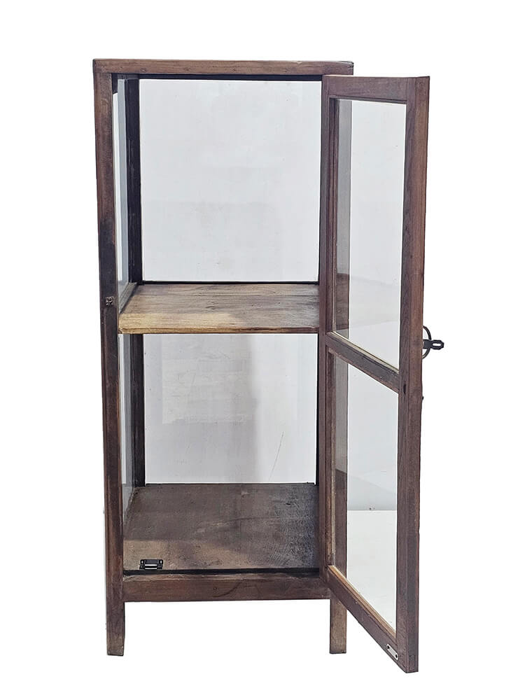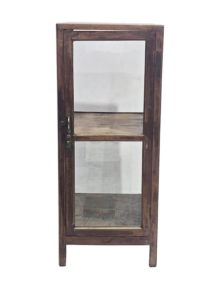 Diese schmale Vitrine ist ein elegantes und ruhiges Element in der Einrichtung. Mit Glas an drei Seiten ermöglicht sie einen schönen Blick auf den Inhalt aus mehreren Perspektiven und eignet sich ideal zur Präsentation von Glas, Keramik, Büchern oder kleinen dekorativen Fundstücken. Der warme Holzton in Kombination mit dem schlichten Design verleiht der Vitrine einen klassischen und zeitlosen Ausdruck. Durch ihre schlanke Form lässt sie sich auch bei begrenztem Platzangebot leicht aufstellen. Sie funktioniert ebenso gut im Wohnzimmer wie in der Küche, im Büro, im Eingangsbereich oder in Ihrem Geschäft. Die klaren Glasflächen sorgen für Leichtigkeit, während der Holzrahmen Charakter einbringt. Eine schöne und praktische Vitrine, die Ihre Dinge in den Fokus rückt und sowohl in moderne als auch in rustikalere Wohnstile passt.