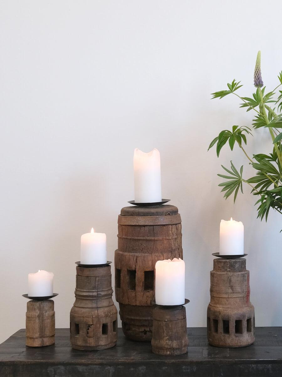 Diese schönen Holzkerzenständer sind aus alten Tischbeinen abgenutzter Esstische gefertigt. Es ist wunderbar, wie man die vielen Stunden Arbeit, in der die Tischbeine geformt wurden, immer noch genießen kann, und das jetzt mit einer Kerze darauf. In vielen Höhen und mit unterschiedlichen Schnitzereien erhältlich.