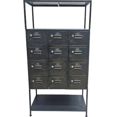 Unsere maskulinen, rauen Schließfächer mit Glastüren haben einen kantigen, industriellen Look und fügen sich auch in die klaren Linien des minimalistischen Dekors ein. Wenn Ihr Dekor von einem kreativeren Element profitieren könnte, empfehlen wir unsere upcycelten, wiederverwendeten Produkte. Zum Beispiel könnten Sie Wandschränke aus alten Kanistern wählen. Sie sind absolut einzigartig und unwiderstehlich.