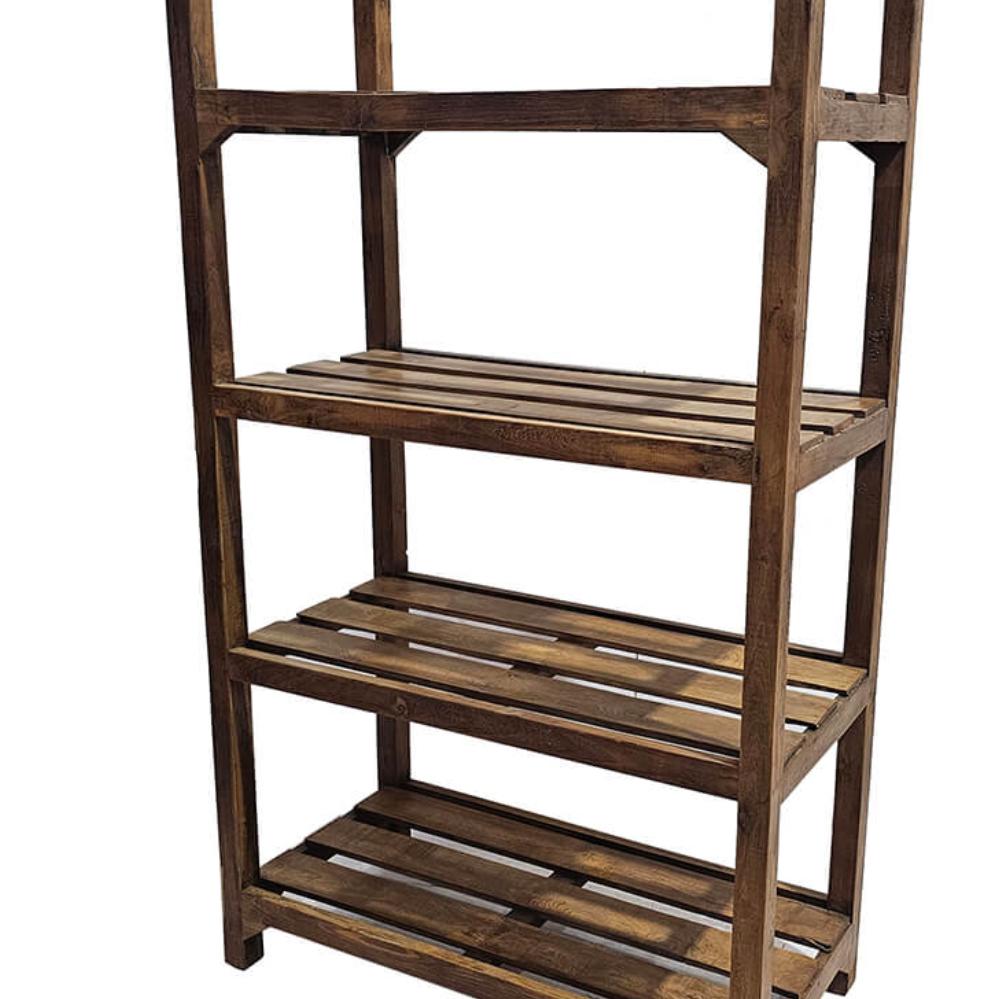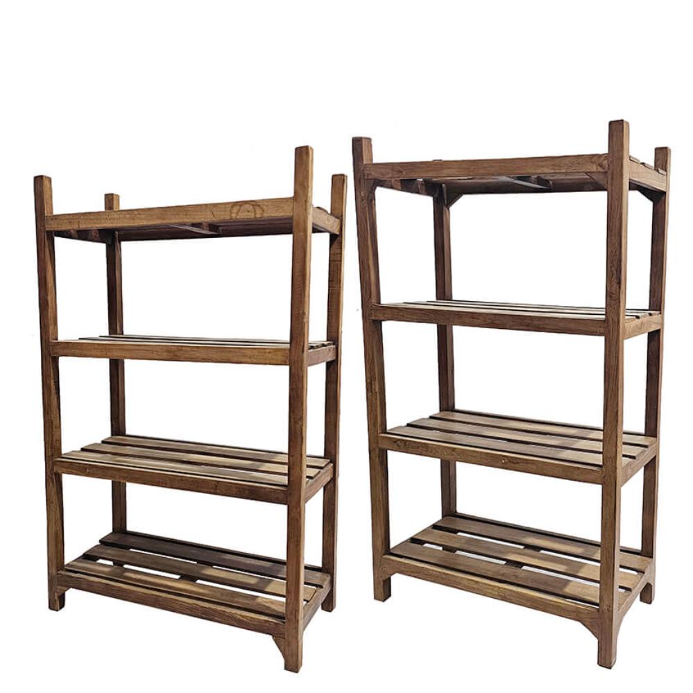 Diese rustikalen Holzregale sind aus massivem Teakholz gefertigt und voller Charakter. Mit ihrer schlichten Konstruktion und dem rohen Look sind sie ein echter Fund für alle, die Materialien mit Geschichte und Möbel ohne überflüssigen Schnickschnack schätzen. Jedes Regal ist ein Unikat und zeigt deutliche Spuren von Gebrauch, Zeit und Handwerkskunst. Der warme Ton des Teakholzes, die natürliche Struktur und die abgenutzte Oberfläche verleihen dem Regal Authentizität und Ausdruck. Es ist robust, zeitlos und dauerhaft – ideal für alle, die Wiederverwendung dem Neukauf vorziehen. Nutzen Sie das Regal im Laden zur Warenpräsentation, im Restaurant für Gläser, Wein oder Geschirr oder zu Hause in der Küche oder im Wohnzimmer als charmante Aufbewahrungslösung. Es passt perfekt zu industriellen, Vintage- oder individuellen Einrichtungsstilen – und zieht Blicke auf sich, ohne aufdringlich zu sein.