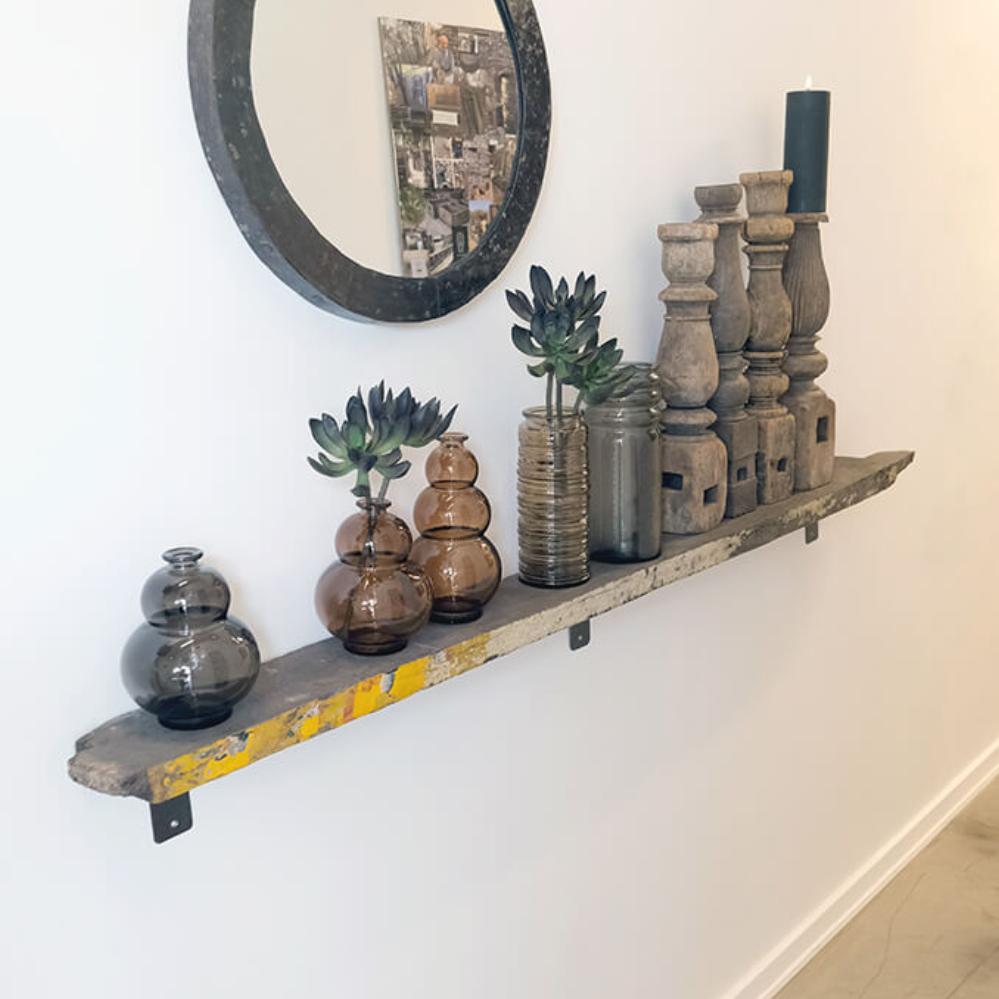 Dieses rustikale Regal ist aus Altholz gefertigt und verleiht ihm viel Patina und Charme. Das Regal ist etwa 2 Meter lang und hat einen robusten, industriellen Look, der perfekt geeignet ist, um einem Raum Charakter und Authentizität zu verleihen. Die Holzoberfläche wirkt roh und unbehandelt und zeigt deutliche Gebrauchsspuren und Geschichte. Die einfache Konstruktion mit Metallbeschlägen unterstreicht das solide und rustikale Aussehen des Regals. Es kann in Wohnungen, Restaurants oder Geschäften verwendet werden, um eine dekorative Aufbewahrungslösung mit Einzigartigkeit und Seele zu schaffen.
