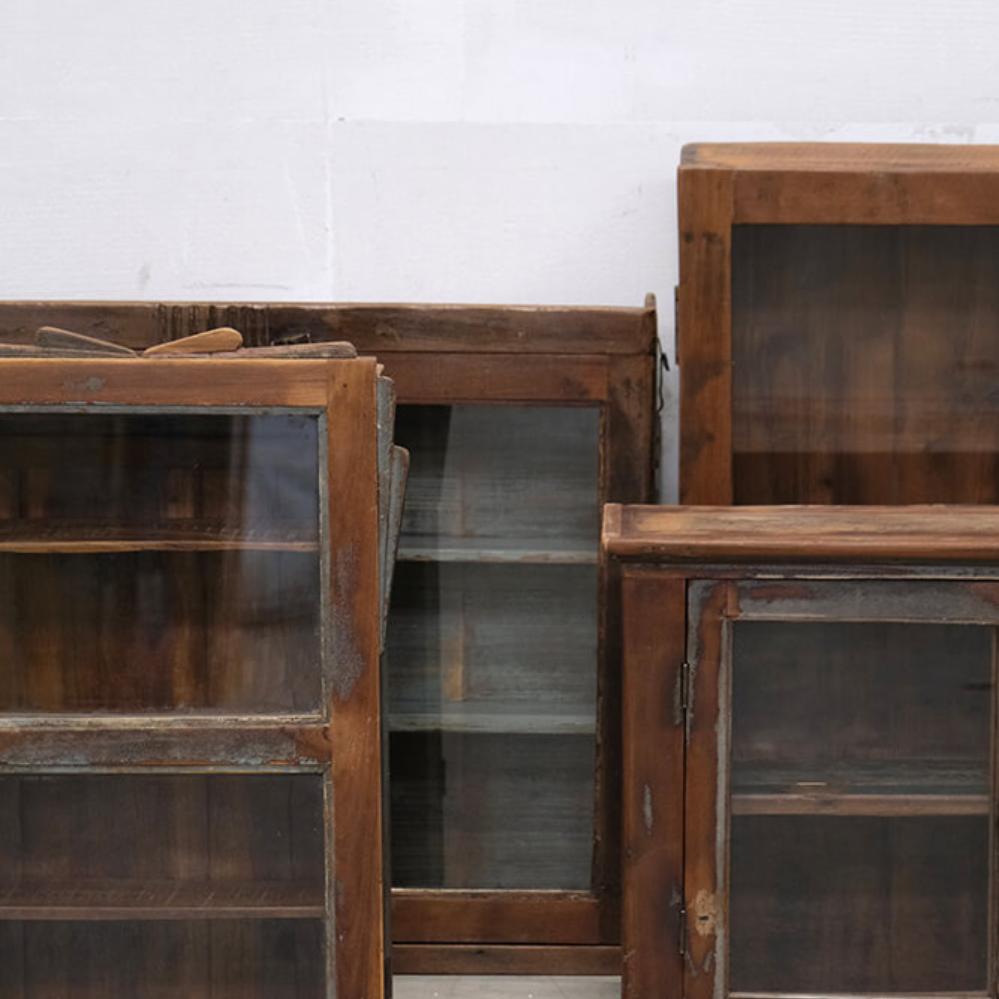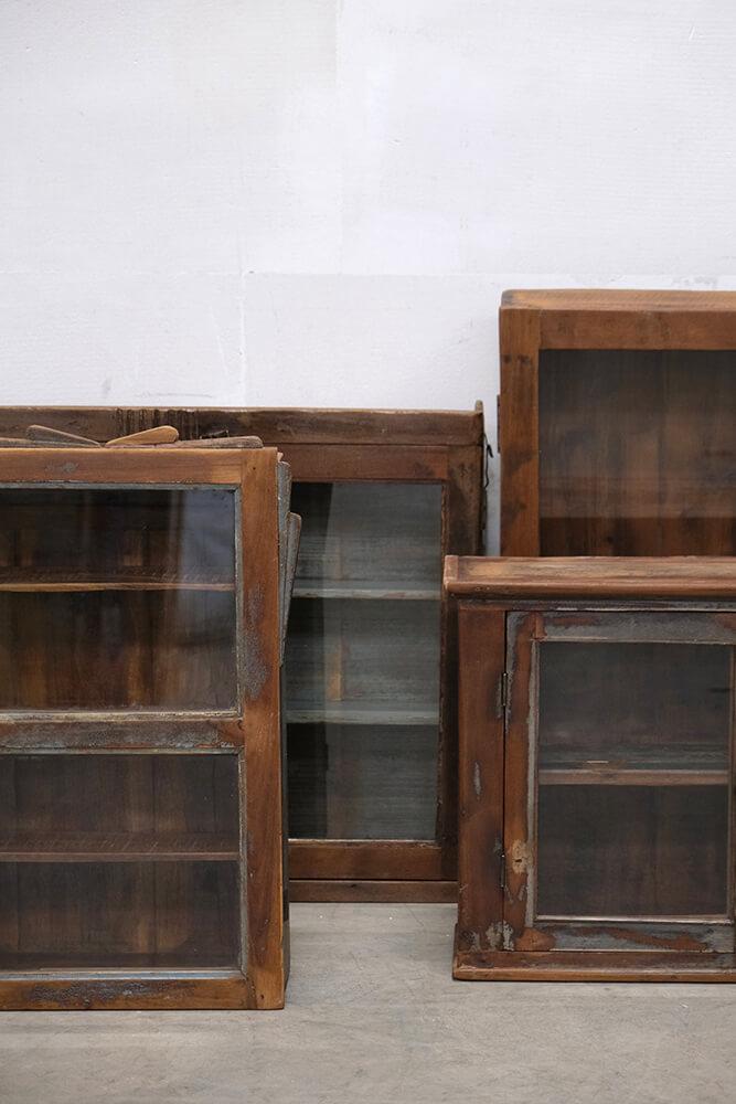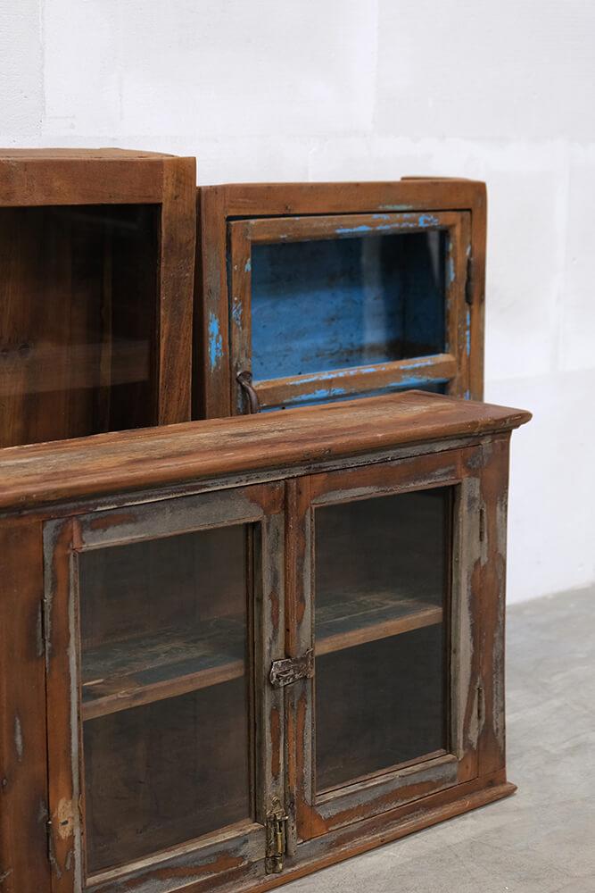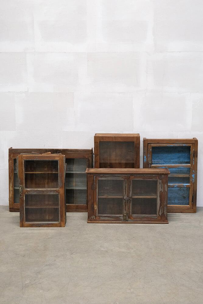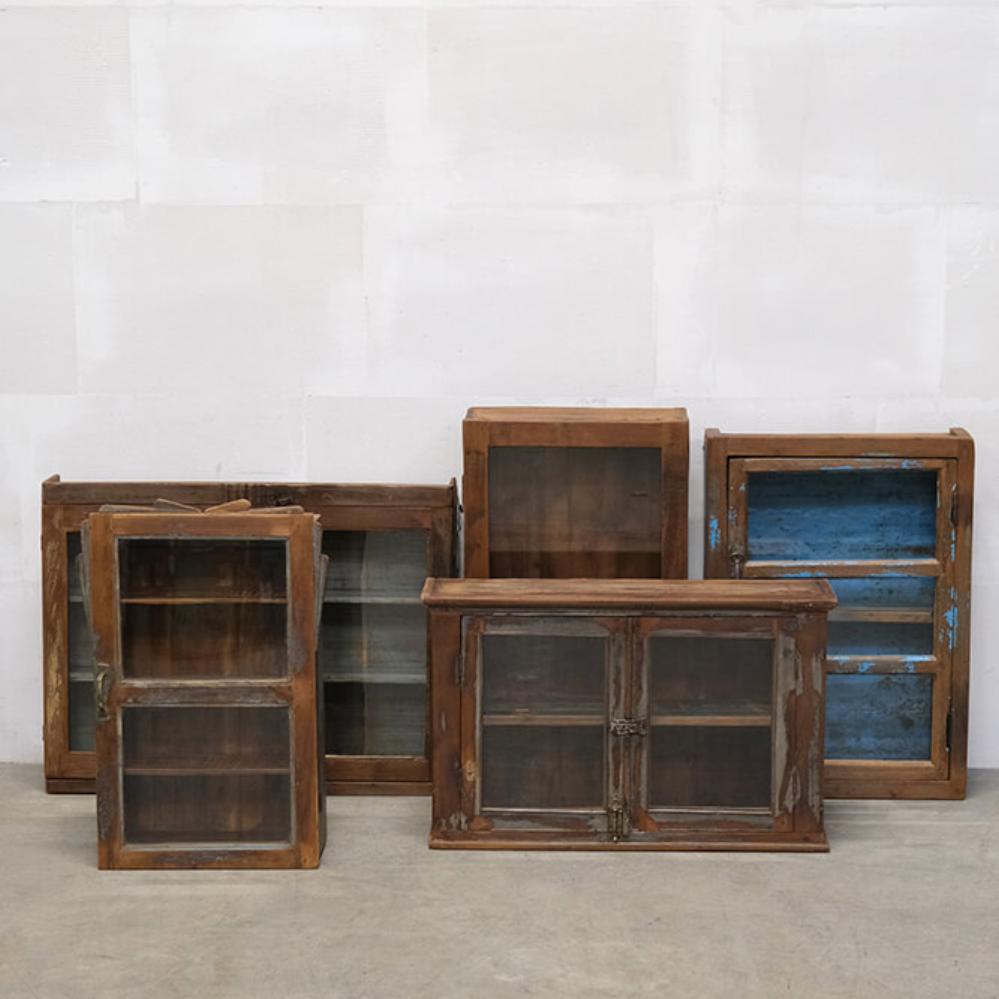 Diese wunderschönen Wandschränke sind jeweils voller authentischem Charakter und Charme. Jeder Schrank hat individuelle Details und Farben, die ihre eigene Geschichte erzählen. Die verschiedenen Farbschichten und die Patina verleihen jedem Schrank einen rustikalen und rauen Ausdruck, ideal, um eine warme und persönliche Atmosphäre in Ihrem Zuhause oder Geschäft zu schaffen. Das rohe, natürliche Holz in Kombination mit den ursprünglichen Details der Schränke macht sie sowohl für Vintage-Einrichtungen als auch für moderne, nordische Wohnstile ideal. Diese Wandschränke sind perfekt, um kleine Gegenstände stilvoll und mit Charakter aufzubewahren und zu präsentieren.