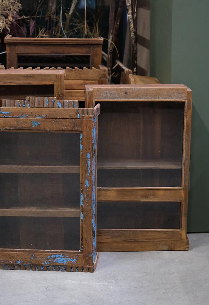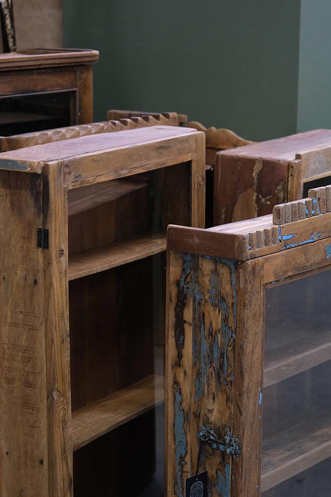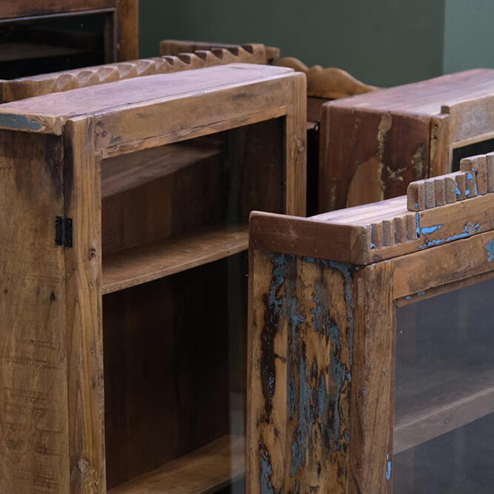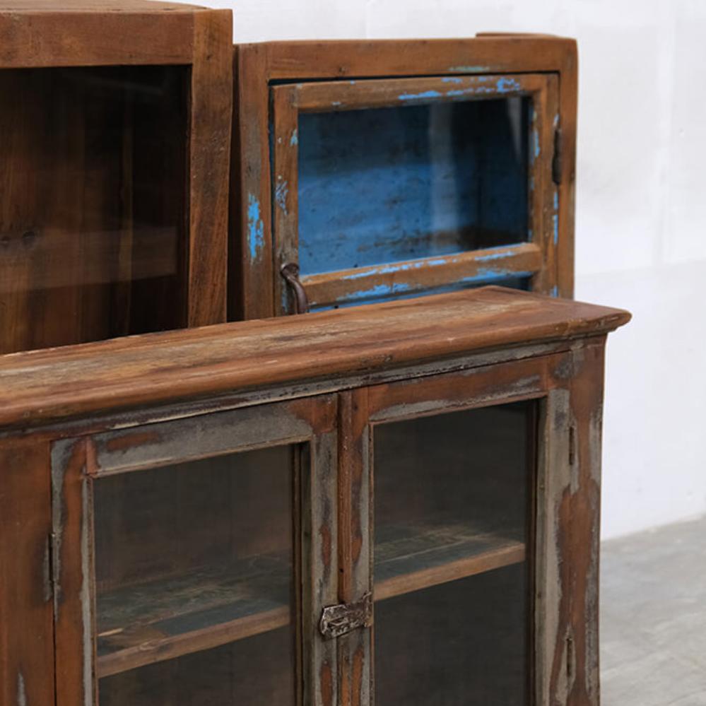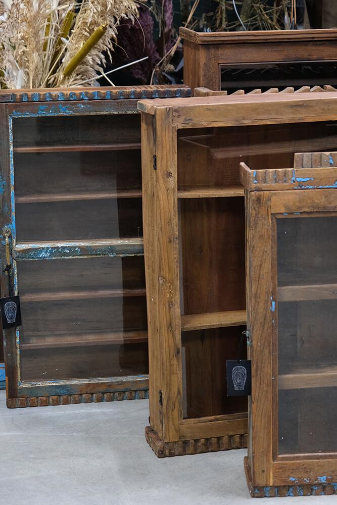Diese wunderschönen Wandschränke sind jeweils voller authentischem Charakter und Charme. Jeder Schrank hat individuelle Details und Farben, die ihre eigene Geschichte erzählen. Die verschiedenen Farbschichten und die Patina verleihen jedem Schrank einen rustikalen und rauen Ausdruck, ideal, um eine warme und persönliche Atmosphäre in Ihrem Zuhause oder Geschäft zu schaffen. Das rohe, natürliche Holz in Kombination mit den ursprünglichen Details der Schränke macht sie sowohl für Vintage-Einrichtungen als auch für moderne, nordische Wohnstile ideal. Diese Wandschränke sind perfekt, um kleine Gegenstände stilvoll und mit Charakter aufzubewahren und zu präsentieren.