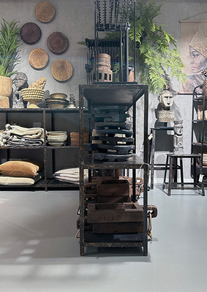 Brauchen Sie Zuhause einen Hauch von Upcycling-Coolness und gleichzeitig mehr Stauraum? Unser großes Regal mit 6 Fächern, hergestellt aus wiederverwendeten Schwerlastplatten aus indischen Industriegebieten, ist die perfekte Lösung. Jede Platte, die dieses Regal bildet, hat eine Geschichte in den florierenden Industrien Indiens und bringt eine authentische Geschichte in Ihr Zuhause. Die robuste Konstruktion und das industrielle Design machen dieses Regal zu einem beeindruckenden und auffälligen Element in jedem Raum.