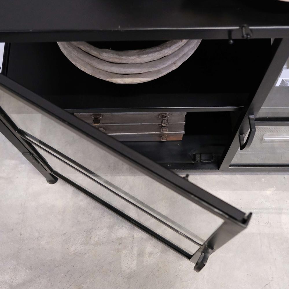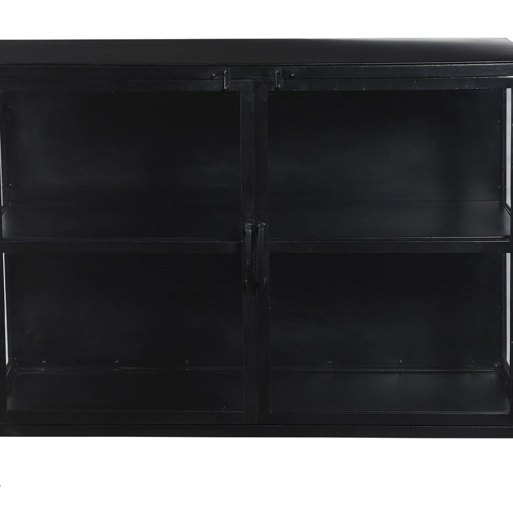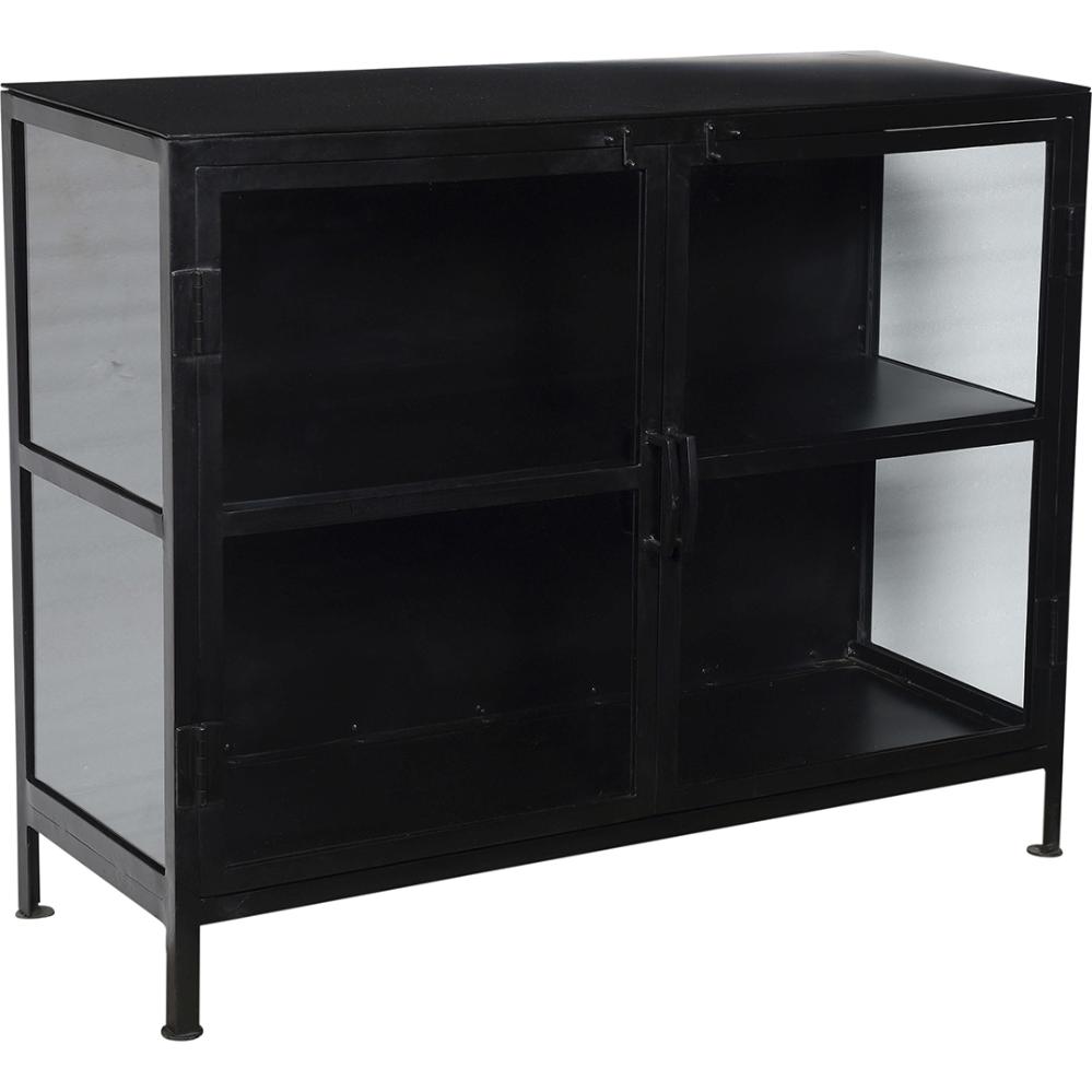 Modernes und funktionelles Sideboard mit Glasseiten und Glastüren. Perfekt für die Aufbewahrung und Präsentation Ihrer schönen Wohnaccessoires. Die Vitrine bietet einen guten Kontrast zum stilvollen Dekor. Regalhöhe oben ca. 36 cm. / Regalhöhe unten ca. 38cm. Einen passenden Schrank mit fünf Fächern finden Sie unter der Artikelnummer: M1006