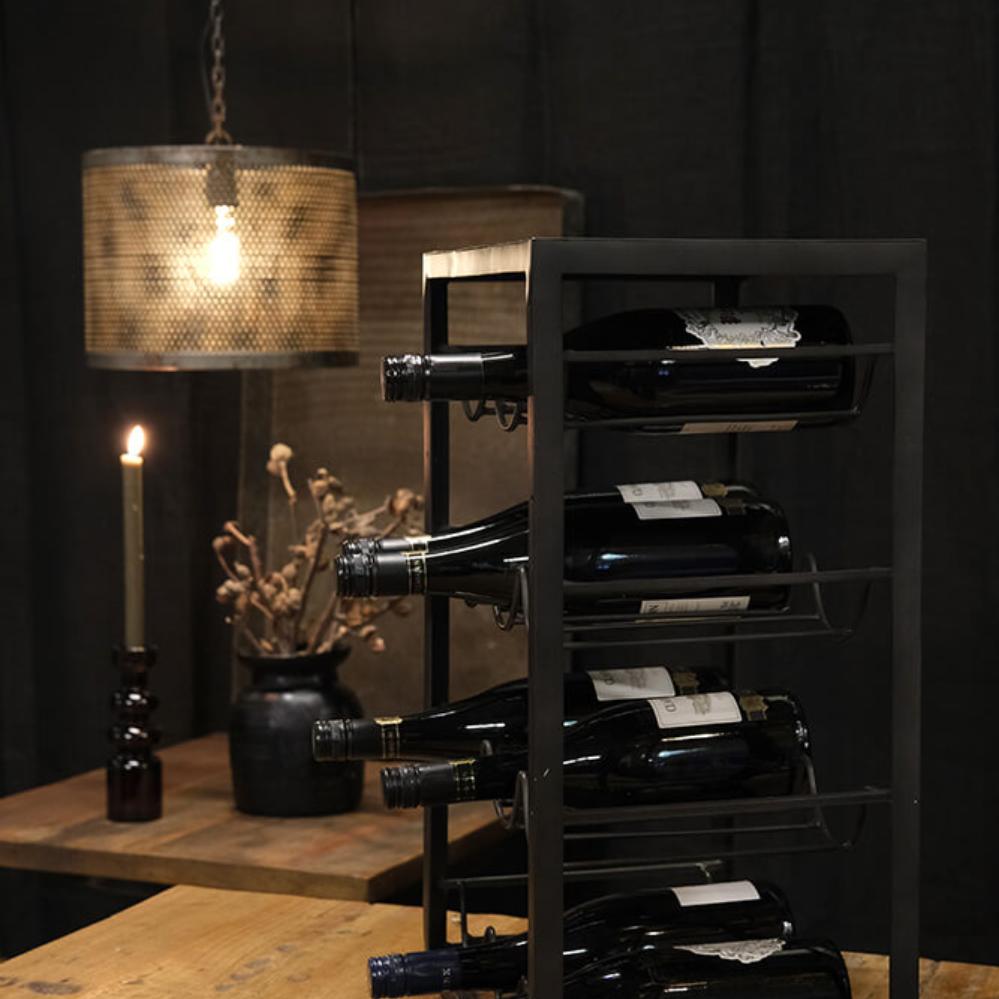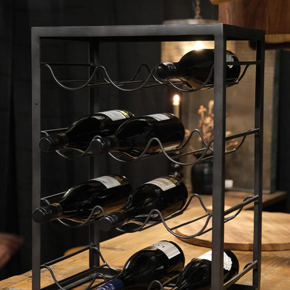 Dieses Weinregal aus klarlackiertem Eisen ist sowohl robust als auch stilvoll. Es bietet Platz für 12 Flaschen und wurde entwickelt, um Ihre Weinsammlung sicher und übersichtlich aufzubewahren. Das minimalistische Design und die industrielle Eisenoptik machen das Weinregal zu einem zeitlosen Element, das perfekt in moderne und rustikale Einrichtungsstile passt. Dank seiner kompakten Größe lässt das Weinregal sich leicht in der Küche, im Esszimmer oder im Weinkeller platzieren und dient sowohl als praktische Aufbewahrungslösung als auch als dekoratives Element. Ein Muss für jeden Weinliebhaber!