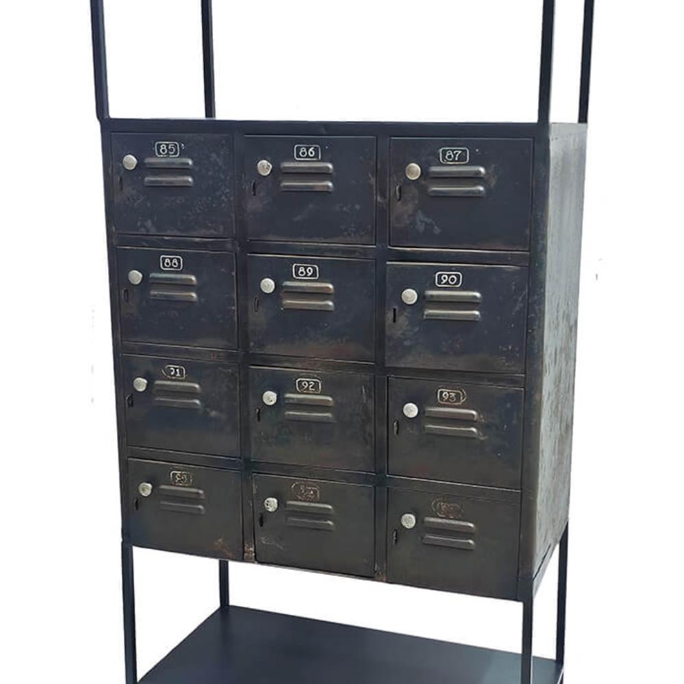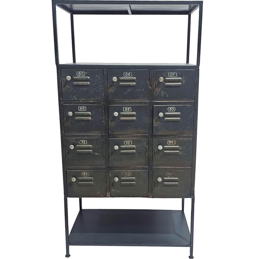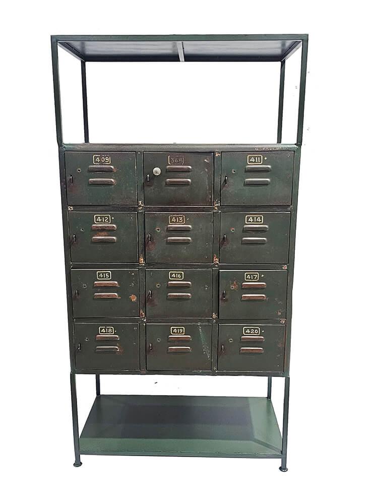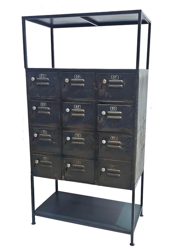 Dieses Regal ist nicht nur für die Aufbewahrung. Es ist Geschichte auf Beinen. Gefertigt aus einem alten Spindschrank und verwandelt in ein rohes Regal mit 12 kleinen Türen, offenen Fächern und jeder Menge Persönlichkeit. Die Farben variieren, und jedes Modell bringt seine ganz eigenen Details mit – Patina, Nummern, Aufkleber und eine gute Portion industrieller Abnutzung. Mit einer Tiefe von 45–50 cm bietet das Regal Platz zum Verstauen und Präsentieren. Die kleinen Türen helfen dabei, Unordnung zu verstecken, während die offenen Fächer ideal für Bücher, Flaschen oder Deko-Elemente sind. Verwenden Sie es als Barschränkchen im Restaurant, als Präsentationsmöbel im Laden oder als auffälliger Blickfang im Wohnzimmer oder Eingangsbereich. Dieses Eisenregal muss sich nicht anstrengen – es hat Charakter von ganz allein.