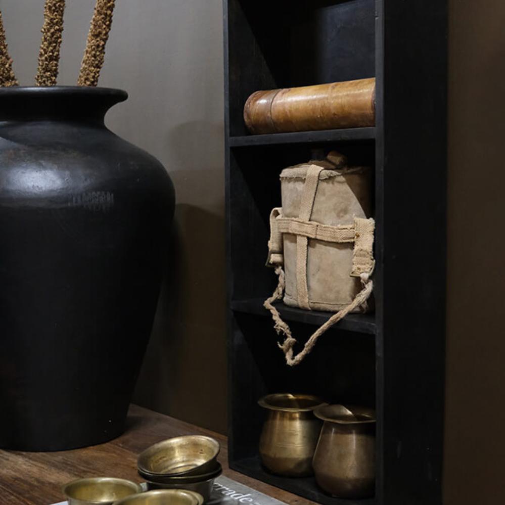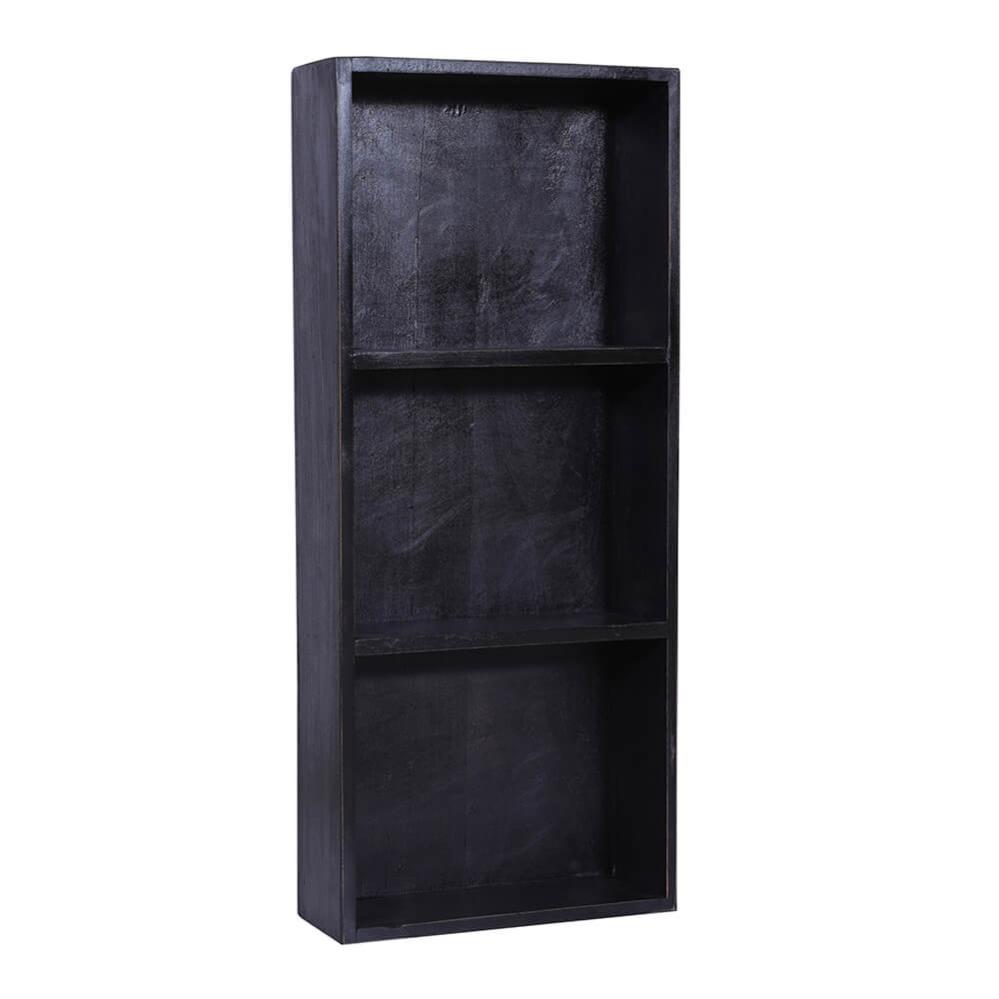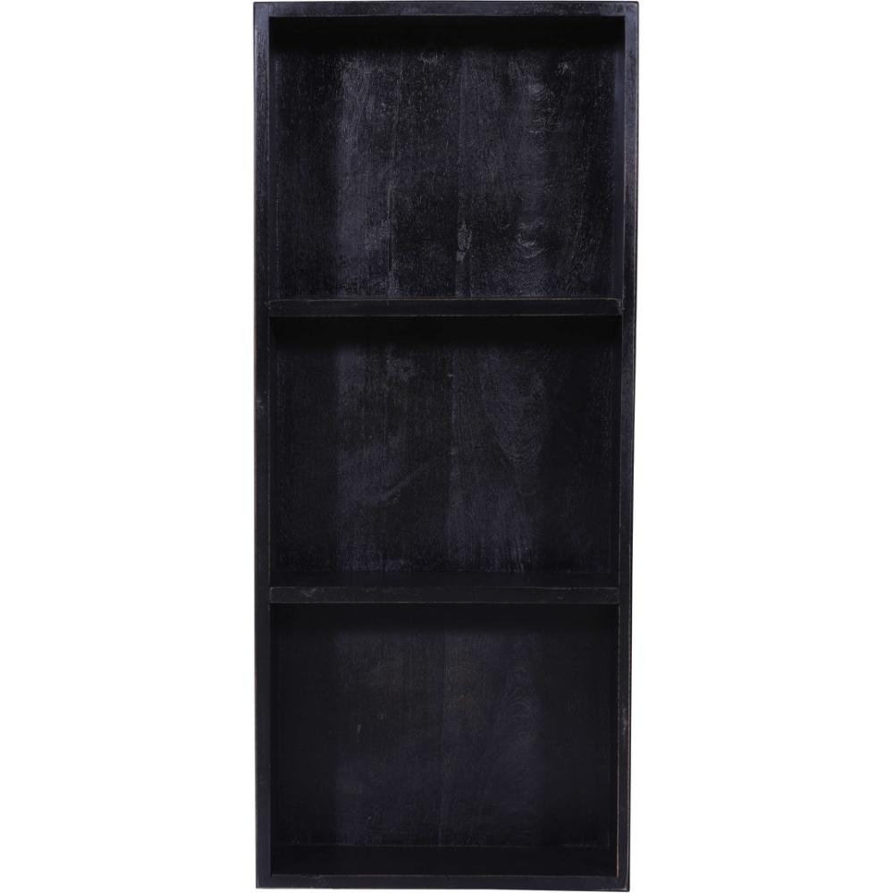 Wunderschönes Wandregal aus schwarz lackiertem Altholz mit 3 Fächern. Dieses schöne und funktionale Wandregal vereint den zeitlosen Charme von Holz mit einem modernen Design, das Ihre Einrichtung bereichern wird. Mit seinen drei Fächern bietet es Stauraum für Tassen, dekorative Gegenstände oder persönliche Schätze. Das schwarze Holz verleiht jedem Raum in Ihrem Zuhause einen anspruchsvollen und klassischen Stil. Hängen Sie dieses schwarze Holzwandregal im Wohnzimmer, Schlafzimmer oder Büro auf, um Ihre Sachen auf stilvolle Weise zu organisieren und zu präsentieren. Der Abstand zwischen den Fachböden beträgt 22 cm.