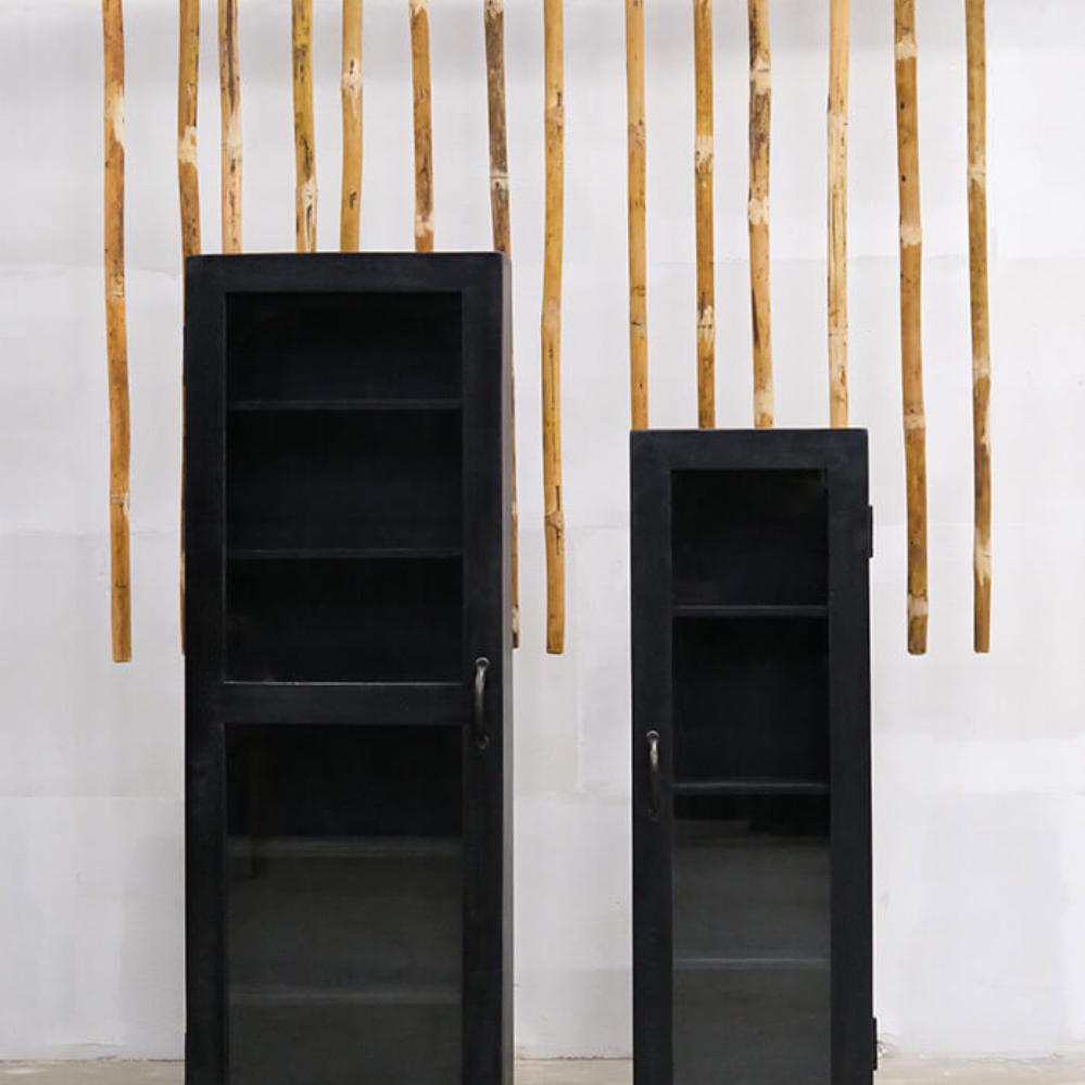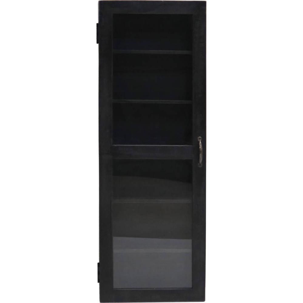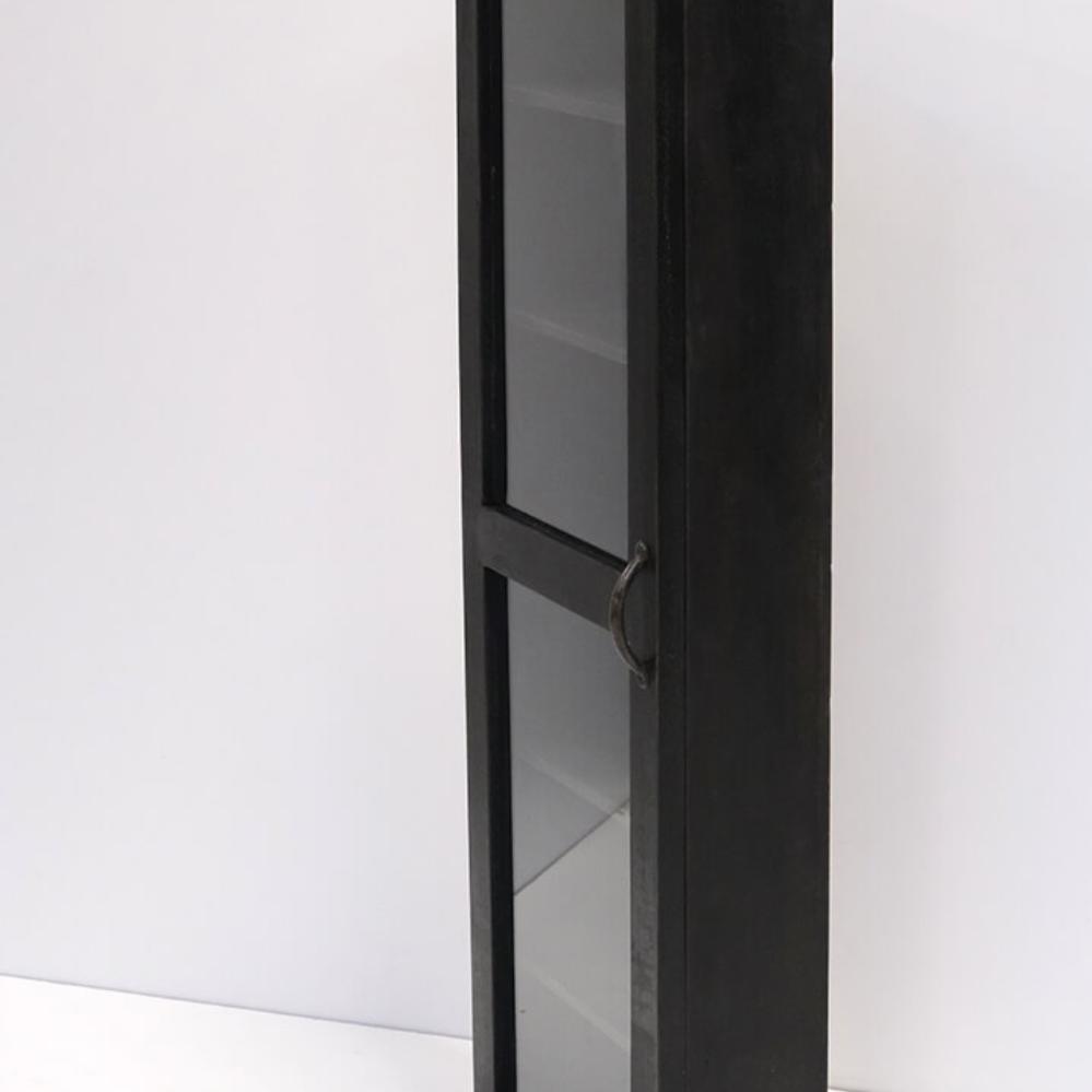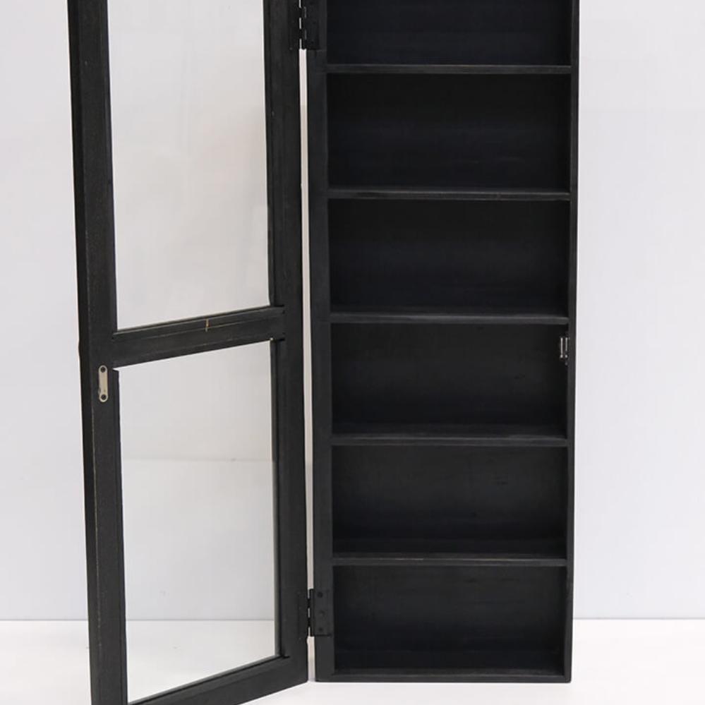 Vermissen Sie Stauraum in Ihrer Einrichtung? Dann ist ein Wandschrank immer ein Treffer. Hier finden Sie einen der schönsten seiner Art. Schwarz lackiertes Holz, eine Glastür, sechs Fächer, ganz schlichtes und stilvolles Design, schmal und chic. Der Wandschrank wirkt leicht und fein und verstaut Ihre Sachen auf eleganteste Weise. Der Schrank ist auch in einem niedrigeren Modell erhältlich: D0908. Der Abstand zwischen den Fachböden beträgt 18 cm.