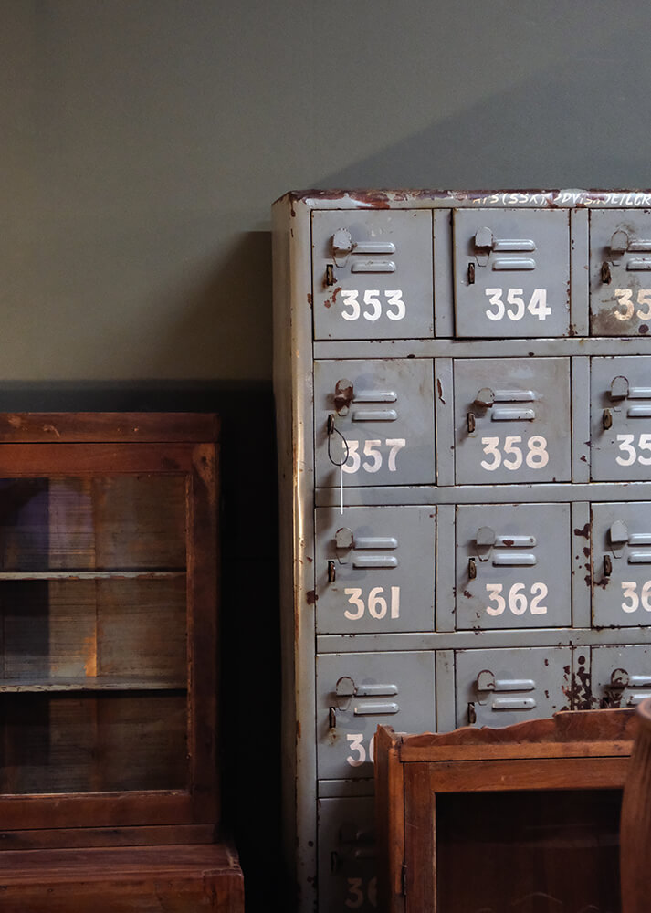 Dieser alte Spindschrank mit 32 Türen strahlt industrielle Nostalgie und rohe Patina aus. Jede Tür hat ihre eigene Nummer, die dem Schrank eine authentische und einzigartige Note verleiht, die von einer Vergangenheit in einer Fabrikhalle oder einem Umkleideraum zeugt. Die rostigen Details und abgenutzten Oberflächen verleihen dem Schrank viel Charisma und Persönlichkeit, die ihn zu einem perfekten Blickfang machen. Verwenden Sie ihn in einem Restaurant oder Geschäft, um eine retro-industrielle Atmosphäre zu schaffen – vielleicht als Aufbewahrungsmöglichkeit für Kleinigkeiten oder dekorative Elemente. Zu Hause kann es als cooles Aufbewahrungsmöbel dienen, das dem Raum sowohl Funktionalität als auch viel Seele verleiht.