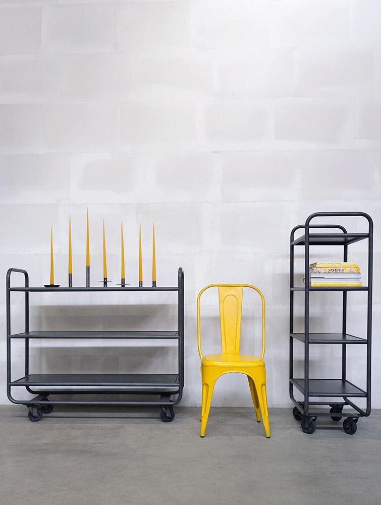 Praktisches und stilvolles Regal auf Rollen aus Eisen mit drei geräumigen Ablagen. Mit einem Abstand von 31 cm zwischen den Fächern bietet das Regal viel Platz für größere und kleinere Gegenstände. Der rohe, industrielle Stil macht es zu einem robusten Möbelstück, das perfekt in private Wohnungen, Cafés, Restaurants und Geschäfte passt. Dank der Rollen lässt sich das Regal leicht bewegen und bietet maximale Flexibilität in der Einrichtung. Nutzen Sie es in der Küche für Geschirr und Kochutensilien, im Wohnzimmer für Bücher und Dekorationen oder in Ihrem Geschäft zur Warenpräsentation. Das schlichte Design macht das Regal sowohl funktional als auch dekorativ. Ein Möbelstück, das Stauraum mit einem rauen und modernen Ausdruck verbindet.