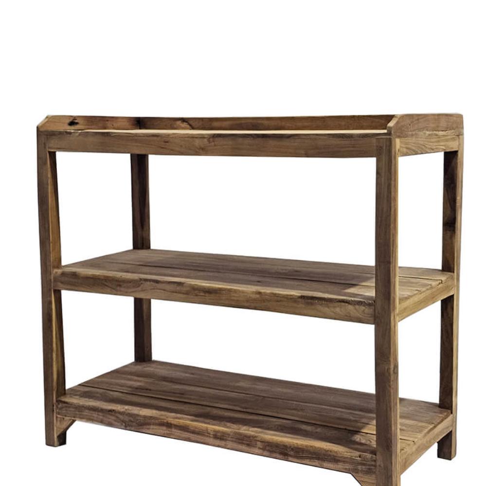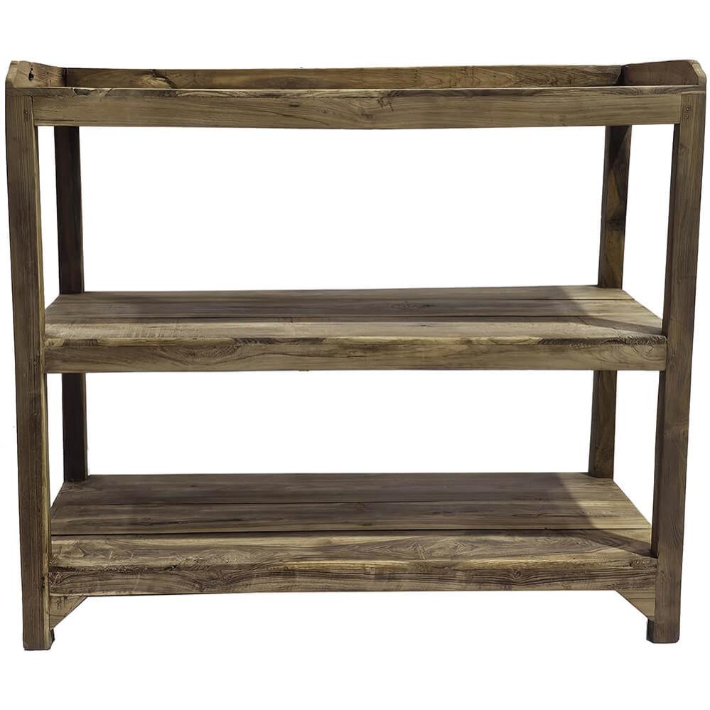 Dieses schöne Regal aus Holz bietet drei geräumige Ablageflächen und ein schlichtes, funktionales Design mit viel Wärme. Jedes Regal ist ein Unikat. Struktur und Farbe können variieren. Genau wie es sein soll, wenn das Material auf natürliche Weise gealtert ist. Ideal zur Aufbewahrung oder als Präsentationsmöbel. Nutzen Sie es in der Küche für Geschirr und Körbe, im Wohnzimmer für Bücher und Vasen oder im Geschäft für Produkte, die eine stilvolle und rustikale Präsentation verdienen. Ein vielseitiges Möbelstück, bei dem die Unterschiede Teil des Charmes sind. Bitte beachten Sie: Die Regale unterscheiden sich deutlich in Optik und Größe.