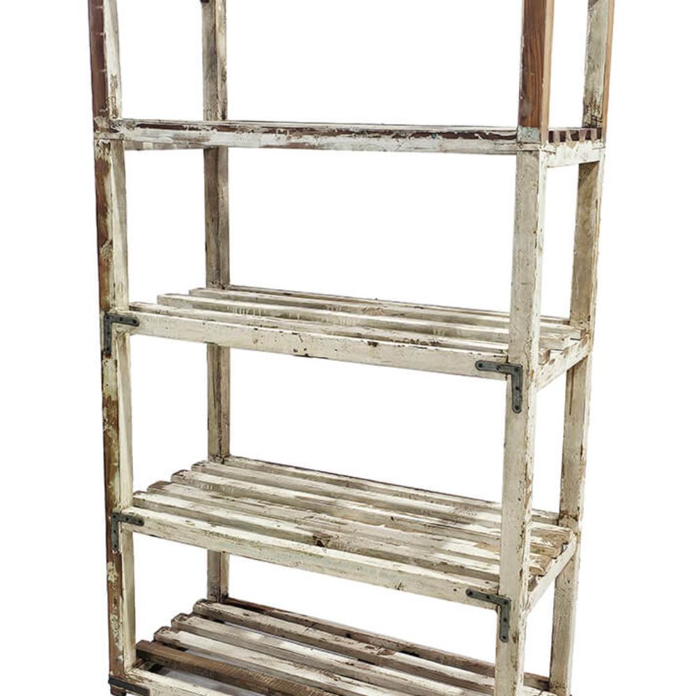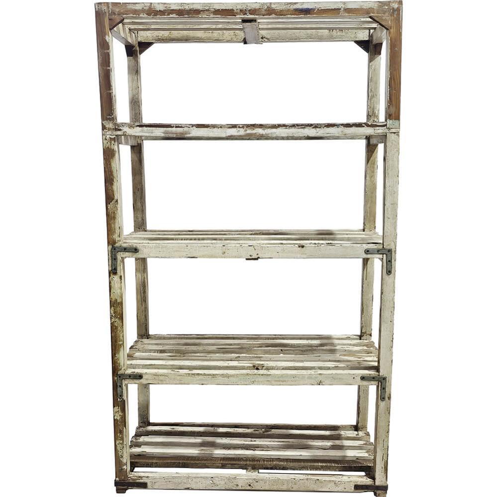 Dieses Vintage-Holzregal ist ein aufregendes Möbelstück. Es besteht aus massivem Holz und hat eine cremefarbene Patina, wie sie nur durch Zeit und Gebrauch entstehen kann. Mit seinem schrägen Ausdruck und der rohen Oberfläche versucht es nicht, edel zu wirken – zieht aber dennoch in jedem Raum die Blicke auf sich. Das Regal wurde in Indien gefunden, wo es bereits ein Arbeitsleben hinter sich hatte. Das sieht und spürt man. Abgenutzte Flächen, abgeblätterete Farbe und stabile Eisenbeschläge erzählen eine Geschichte von Funktion vor Dekoration – und genau das verleiht dem Regal seinen authentischen Charme und seinen rustikalen Look. Verwenden Sie das Regal im Laden zur Präsentation charakterstarker Produkte, im Café zur Aufbewahrung oder als rohen Kontrast in einem minimalistischen Zuhause. Es eignet sich perfekt als Aufbewahrungsregal, Präsentationsfläche oder einfach als Möbelstück mit Seele und Charakter.