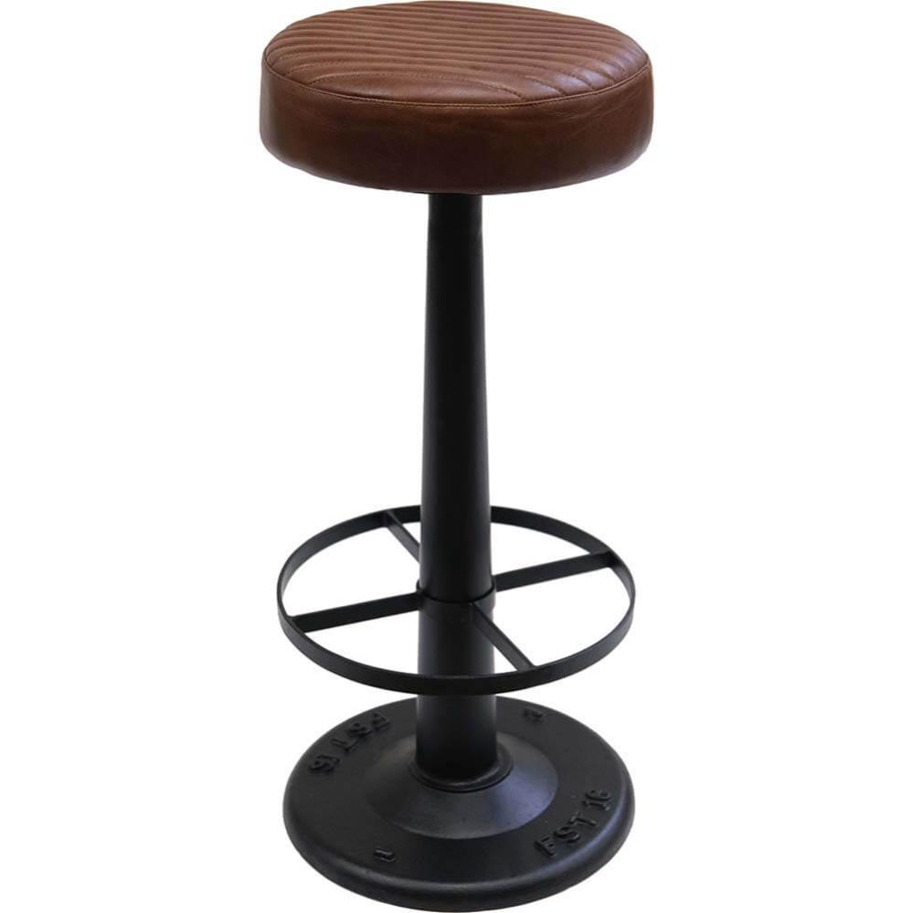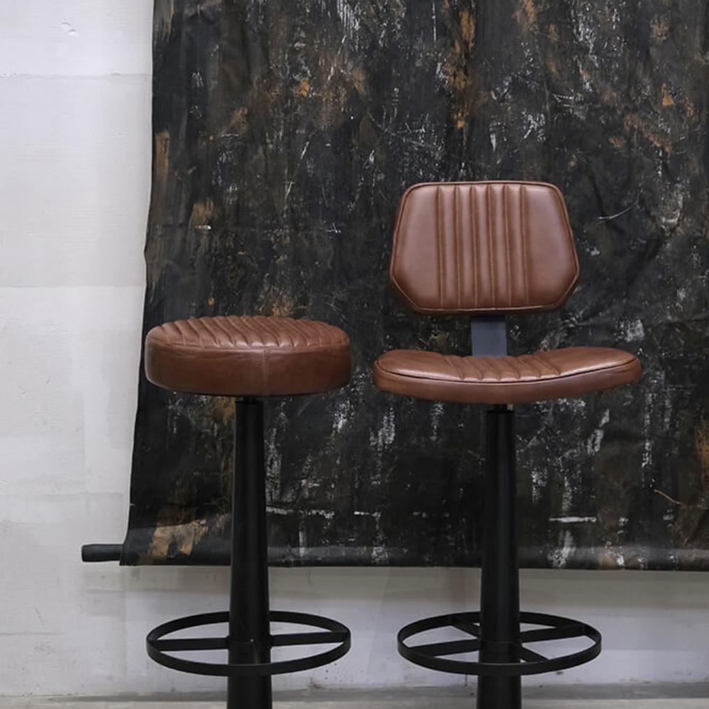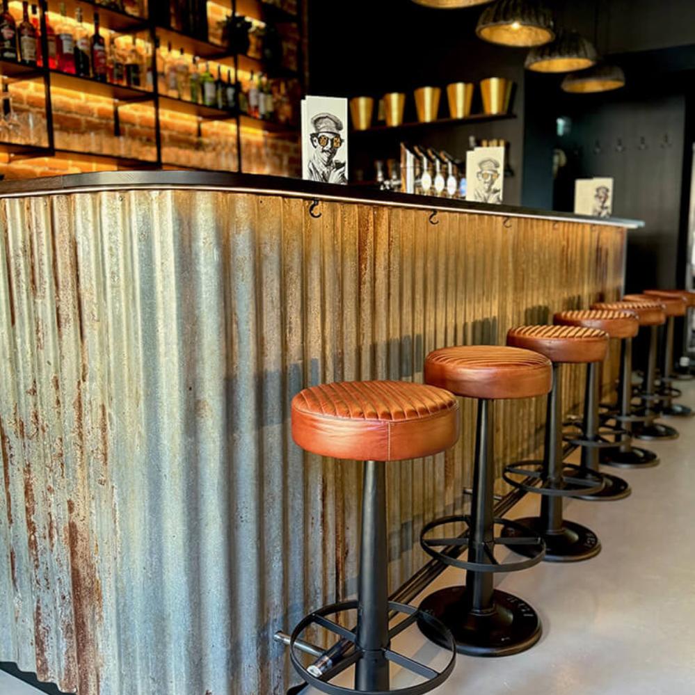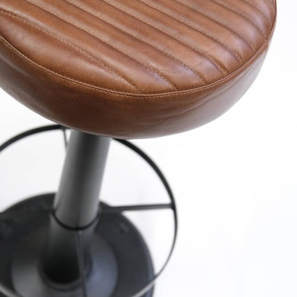 Dieser drehbare Barhocker vereint Funktionalität und einen rohen Ausdruck. Der Sitz ist mit braunem gesteppten Leder gepolstert, das sowohl für Komfort als auch für einen maskulinen Look sorgt. Das schwarze Metallgestell ist robust und mit einem soliden Fuß versehen, der für Stabilität und industriellen Charme sorgt. Die integrierte Fußstütze sorgt für zusätzlichen Komfort, und die Drehfunktion macht den Stuhl ideal für Bars, Restaurants und Cafés, wo Flexibilität und Stil im Vordergrund stehen.
