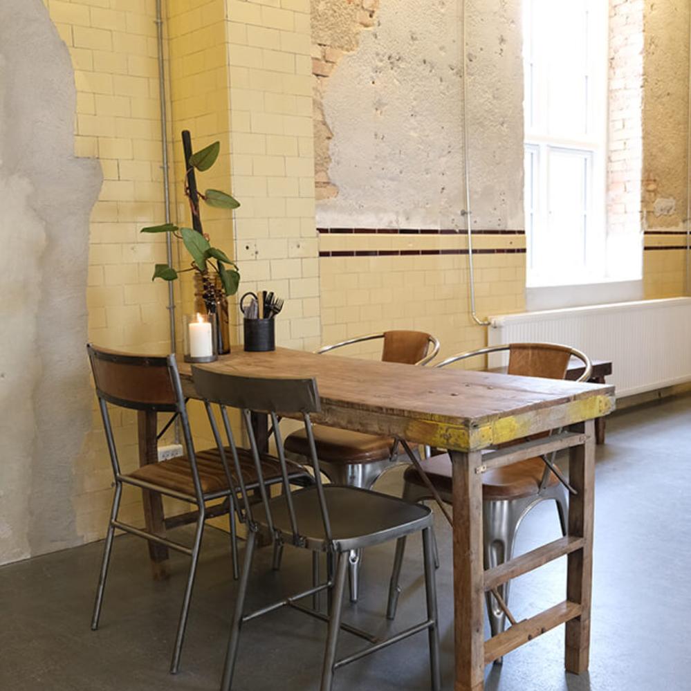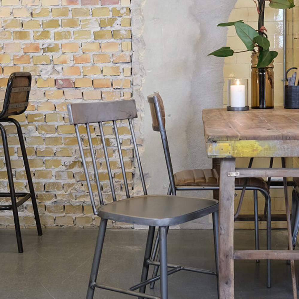 Geben Sie Ihrem Essbereich mit diesem Stuhl aus Eisen eine raue und industrielle Note. Der Stuhl ist aus Eisen mit einer rauen Oberfläche gefertigt, was ihm einen authentischen und rustikalen Look verleiht. Die einfache Rückenlehne mit vertikalen Metallstangen und einem soliden Sitz macht ihn robust und praktisch. Darüber hinaus macht die neutrale Farbe des Stuhls ihn einfach zu kombinieren mit verschiedenen Tischen und Einrichtungsstilen.