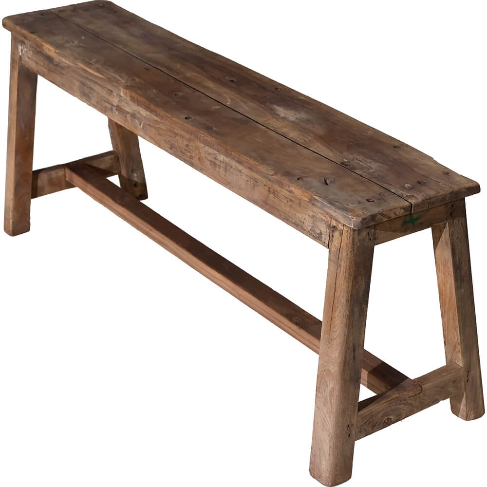 Diese rustikale Holzbank ist eines dieser Möbelstücke, die sich einfach richtig anfühlen, sobald man sie sieht. Sie besteht aus solidem Holz mit viel Charakter, kleinen Gebrauchsspuren, Patina und Zeichen eines langen Lebens, die jede Bank zu einem Unikat machen. Die Form ist schlicht und ehrlich, und die stabile Konstruktion macht sie sowohl als Sitzgelegenheit als auch als dekoratives Möbel im Eingangsbereich oder Wohnzimmer geeignet, ebenso wie zur Warenpräsentation in Ihrem Geschäft. Nutzen Sie sie als Bank an einem langen Esstisch oder als gemütliches Displaymöbel für Pflanzen, Körbe oder Bücher. Eine bodenständige Klassikerin, die jedem Raum Wärme und natürliche Ausstrahlung verleiht.